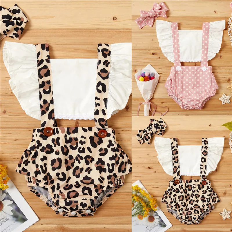 Детский комбинезон с рюшами для новорожденных девочек; Детский комбинезон с принтом леопарда; Боди; Одежда
