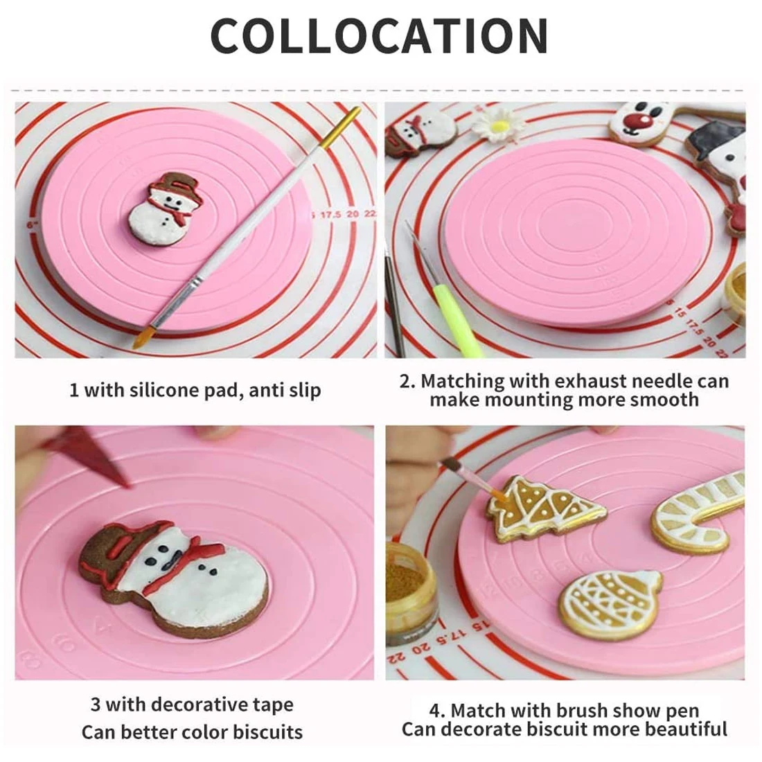 3. Плавное вращение: благодаря шариковым подшипникам из нержавеющей стали, подставка для торта может легко вращаться, по часовой стрелке или против часовой стрелки, очень подходит для украшения левой и правой руки, вы сможете идеально формировать и украшать торт.