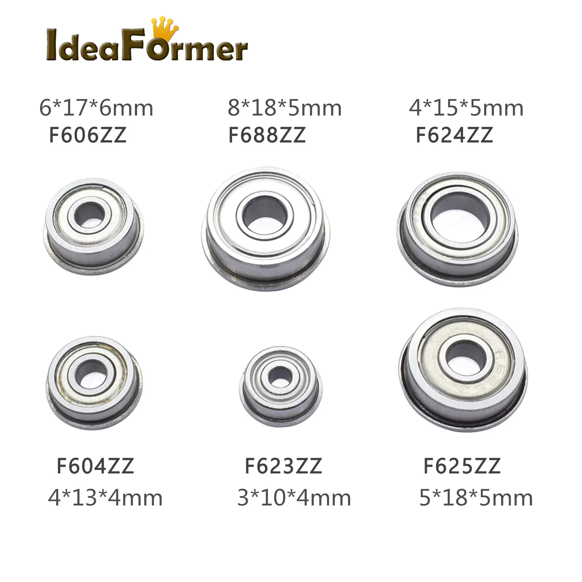 Название: 10 шт. фланцевых шарикоподшипников F604ZZ F623ZZ F624ZZ F625ZZ F606ZZ F688ZZ для ЧПУ 3D принтера, фланца, тонкие стеновые радиальные шарикоподшипники с глубокими канавками. Материал: сталь Тип: фланцевый радиальный шарикоподшипник