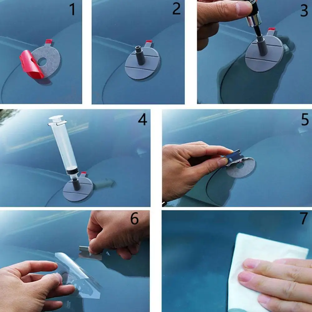 Набор для Ремонта Лобового стекла DIY предназначен для заполнения воздушной полости сильным проникающим клеем, который скрепляет свободное стекло и восстановит видимость.