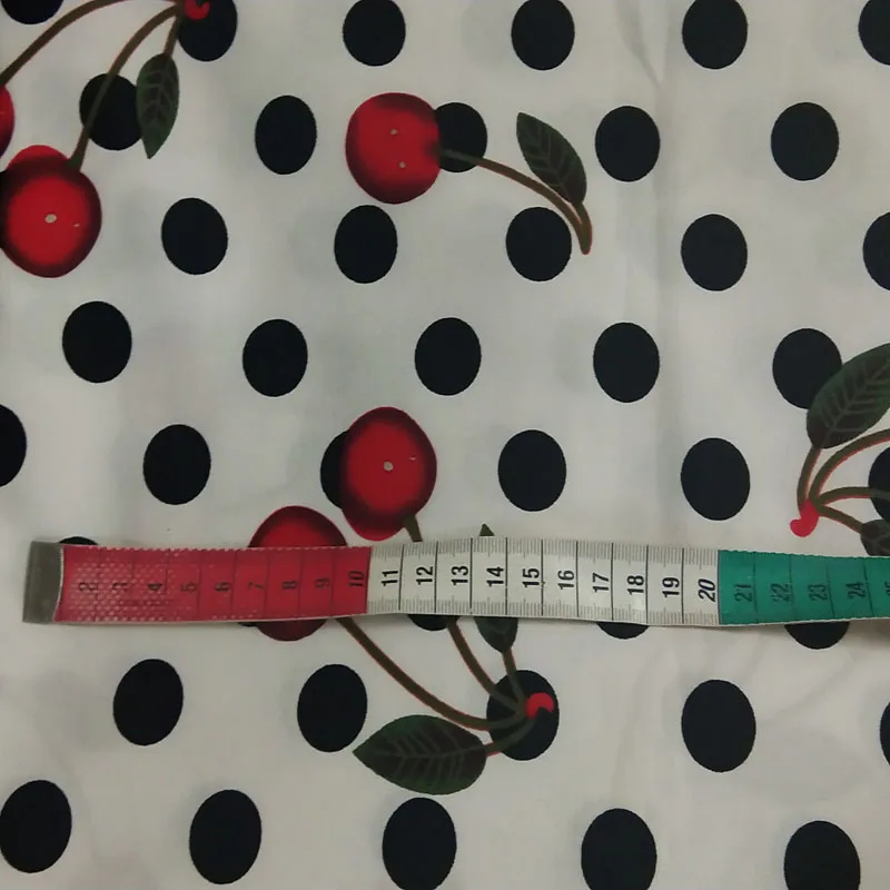 Красивая красная вишня, черный узор в горошек, хлопок, спандекс, ткань 50x140 см, эластичная ткань, растягивающаяся ткань, лоскутное платье, ткань, домашний декор