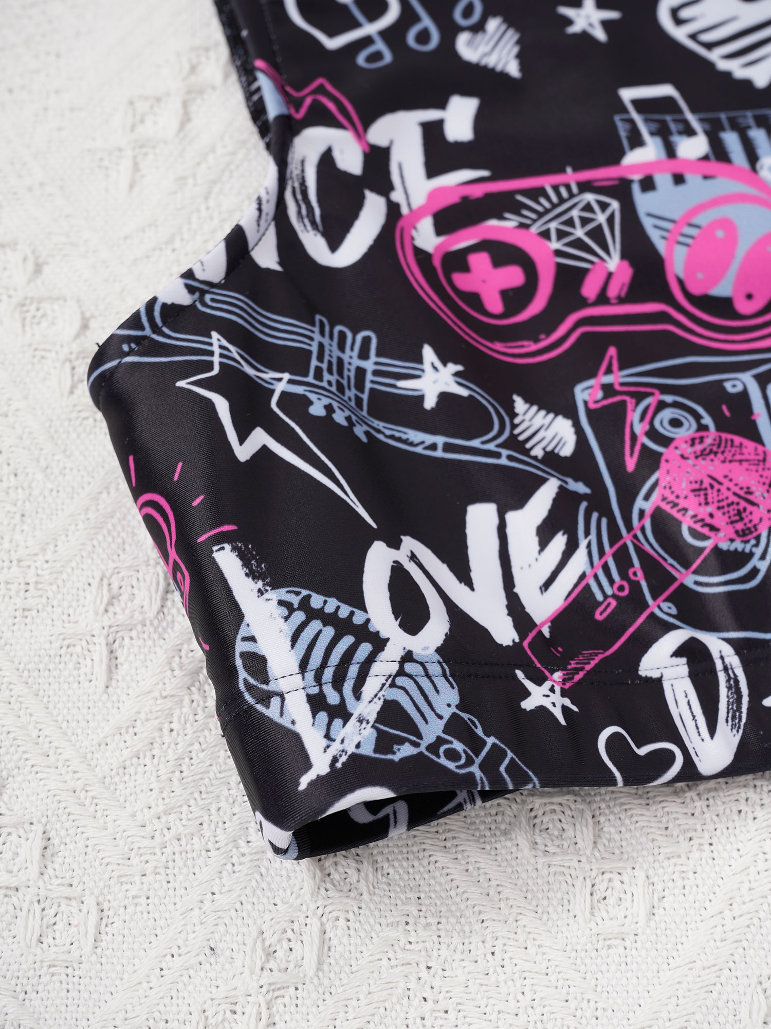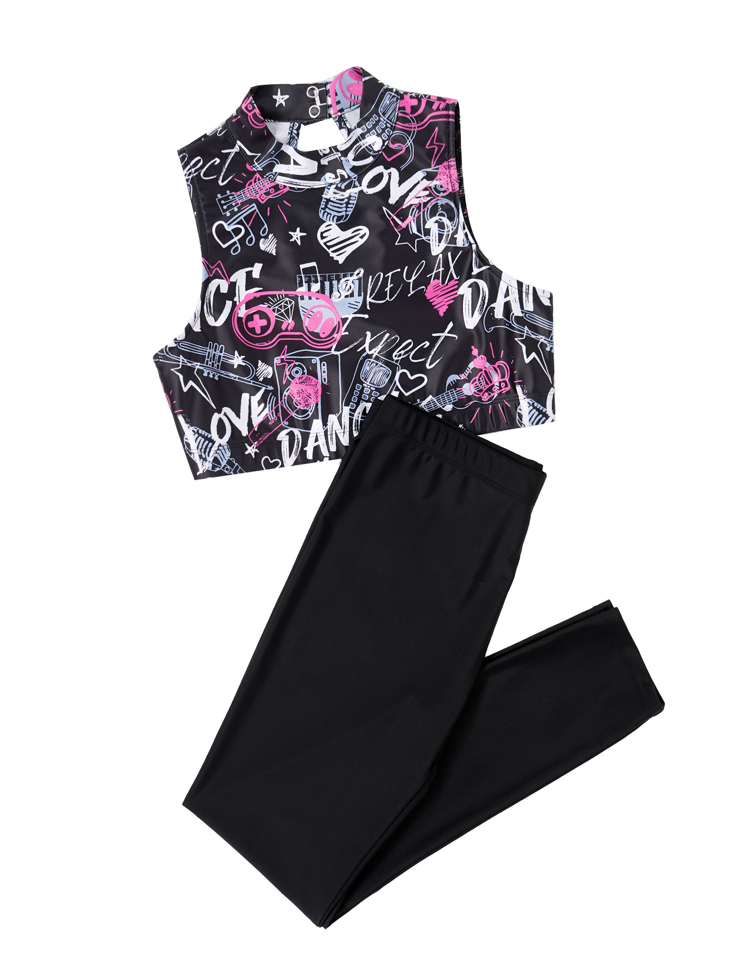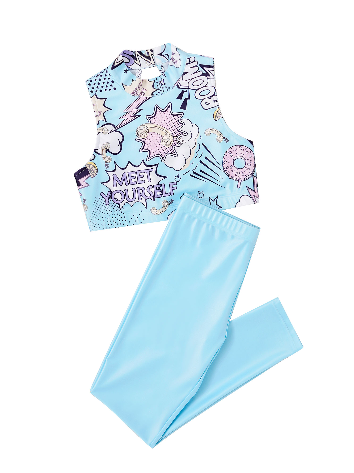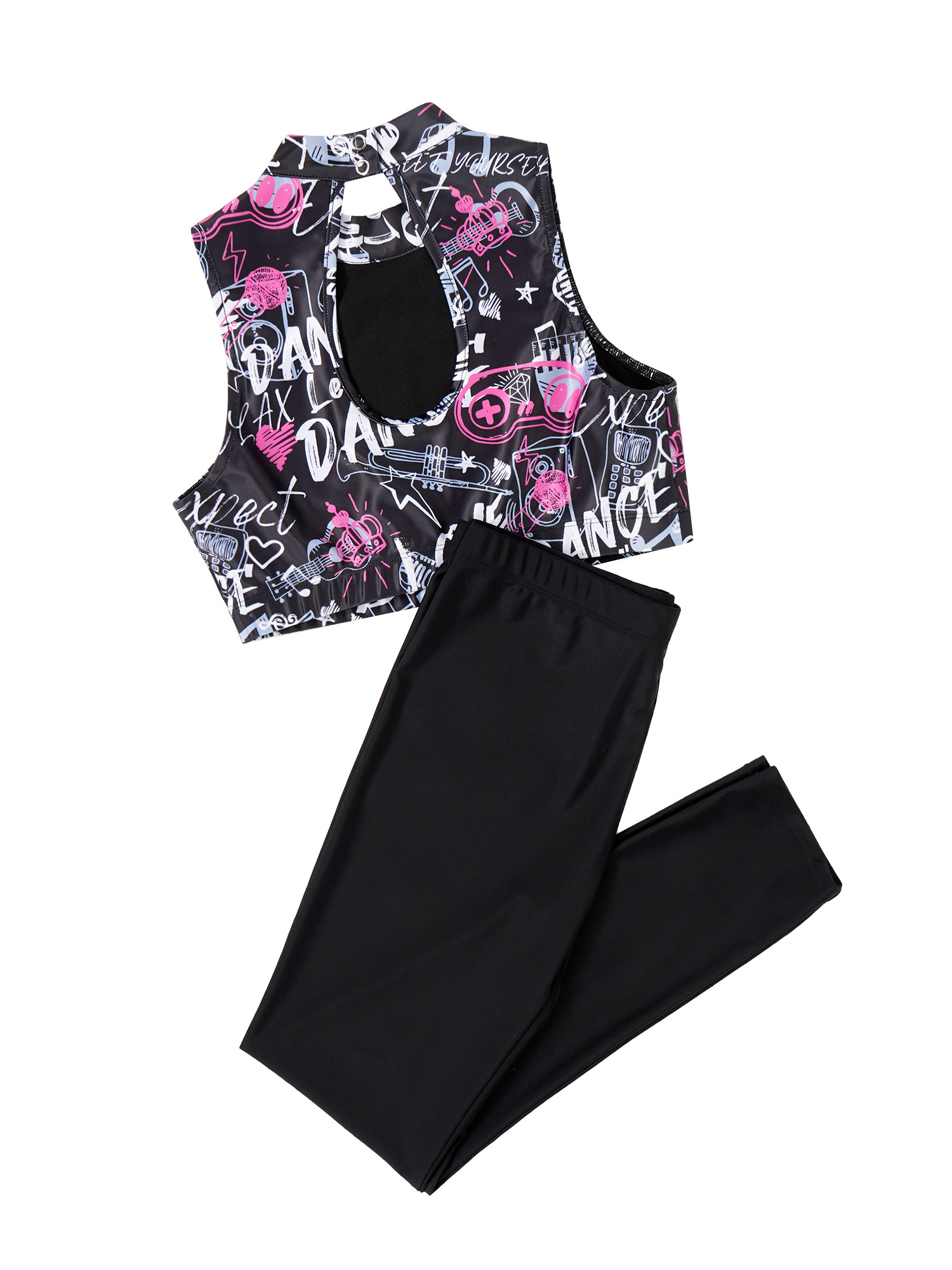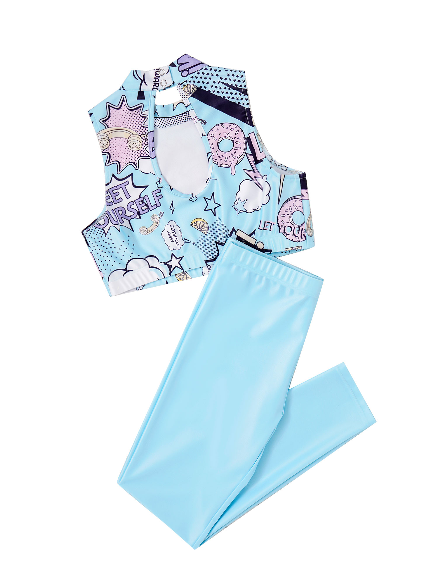 Спортивный костюм для девочек с воротником-стойкой, без рукавов, с вырезом на спине, укороченный топ с эластичной резинкой на талии, комплект со штанами.