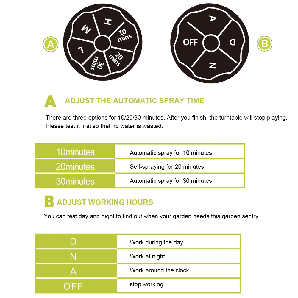 * 4. Спринклера с различными вариантами день только в том случае, ночной только в том случае, или 24 часа защита, что дает вам гибкость для того, чтобы обеспечить Отпугиватель москитов средство только активирует в тех случаях, когда вам это нужно.