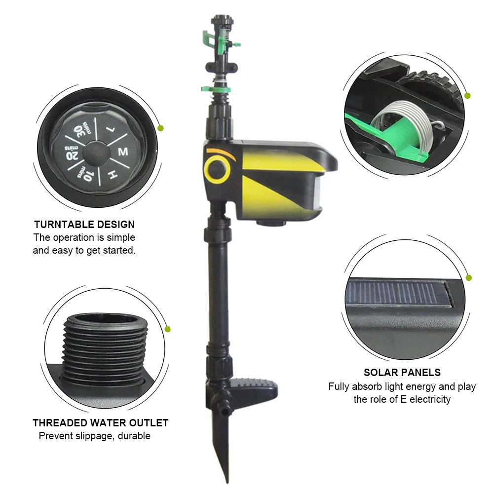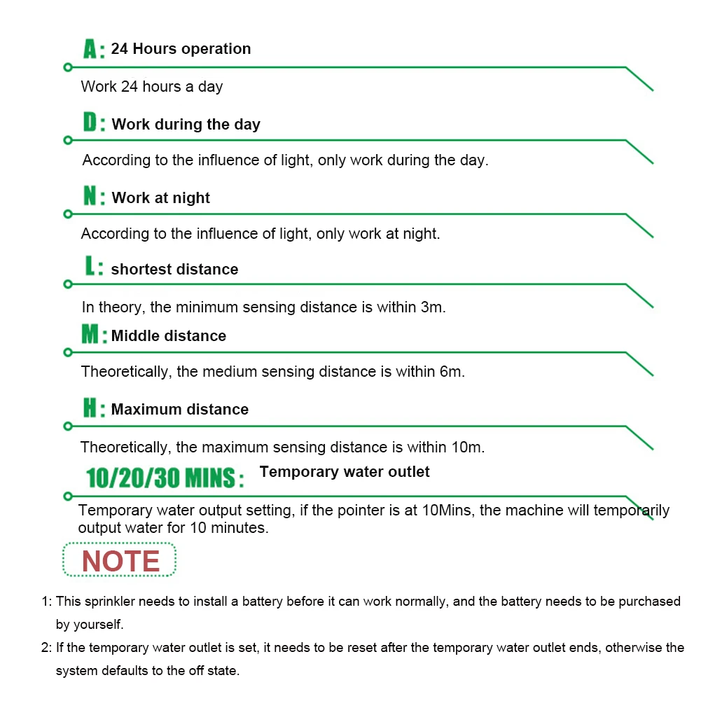 * 3. Когда вторгающиеся животные входят в радиус действия PIR, Отпугиватель может извлечь воду из вращающегося спринклера и выпустить сильную вспышку, чтобы увезти их, сохранить свой сад, сад, питомник и пруд от неожиданных животных.