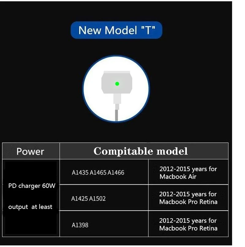 Новинка! 180 см Магнитный USB-C типа MagSaf * 1 2 кабель Шнур для Apple Macbook Pro Air 29 Вт 30 Вт 61 Вт 65 Вт 87 Вт 96 Вт Зарядное устройство адаптер питания