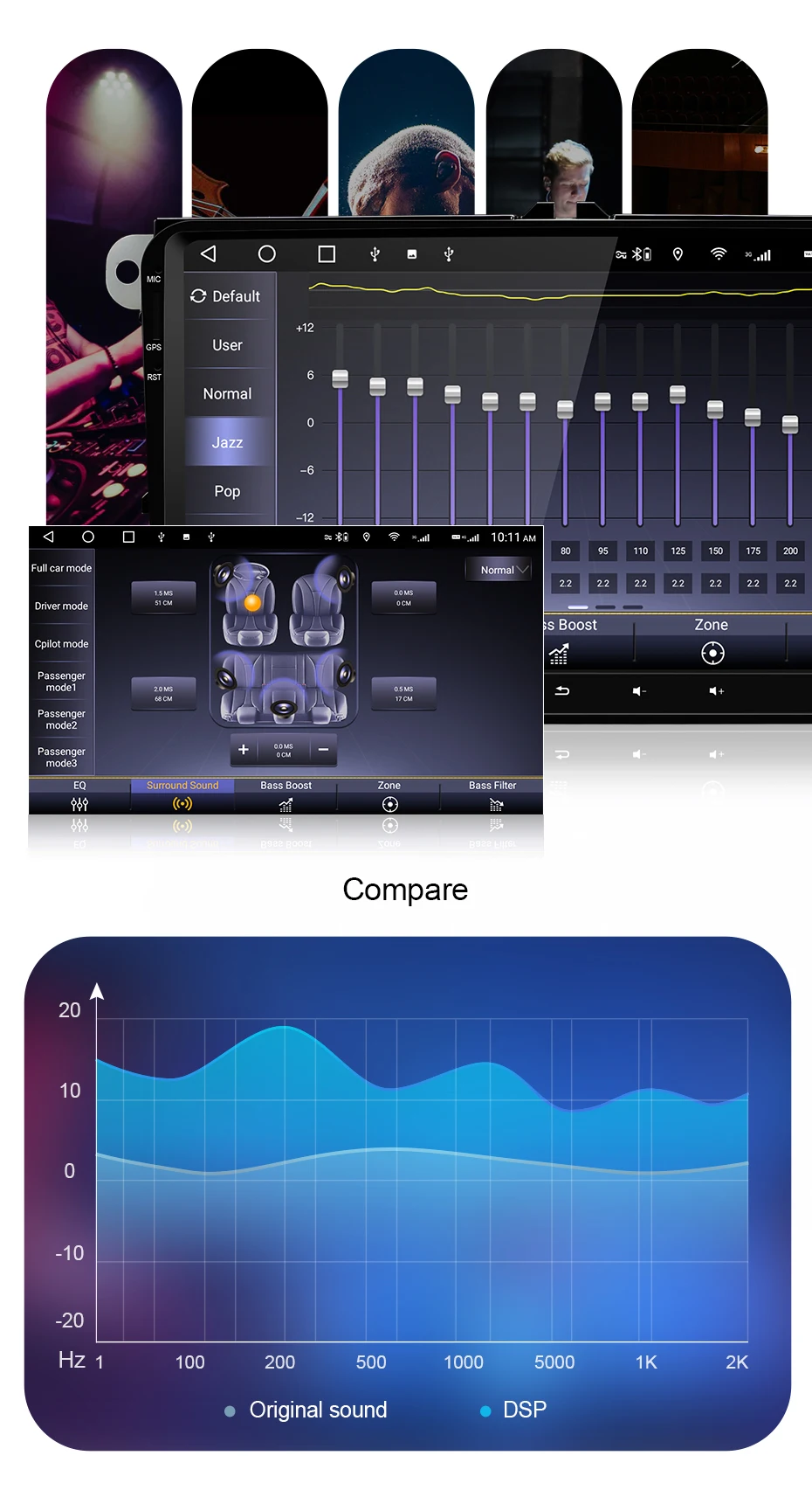 2. Сенсорный экран 5D, он толще и прочнее обычного экрана, идеально подходит для автомобильной консоли.