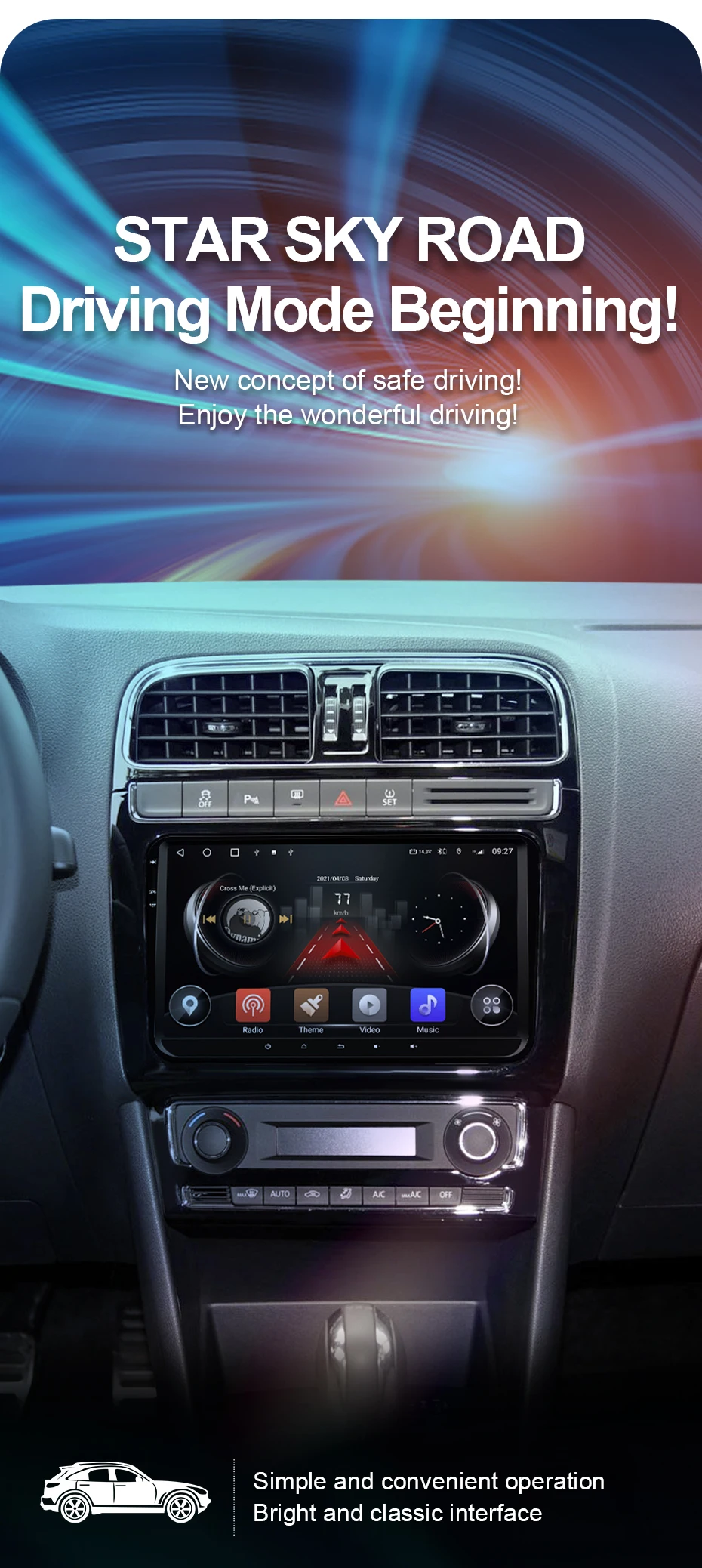 Поддержка управления рулевым колесом, информация о автомобиле и воздушное отображение, оригинальный передний и задний радар. (Оригинальное радио может отображать информацию о автомобиле)