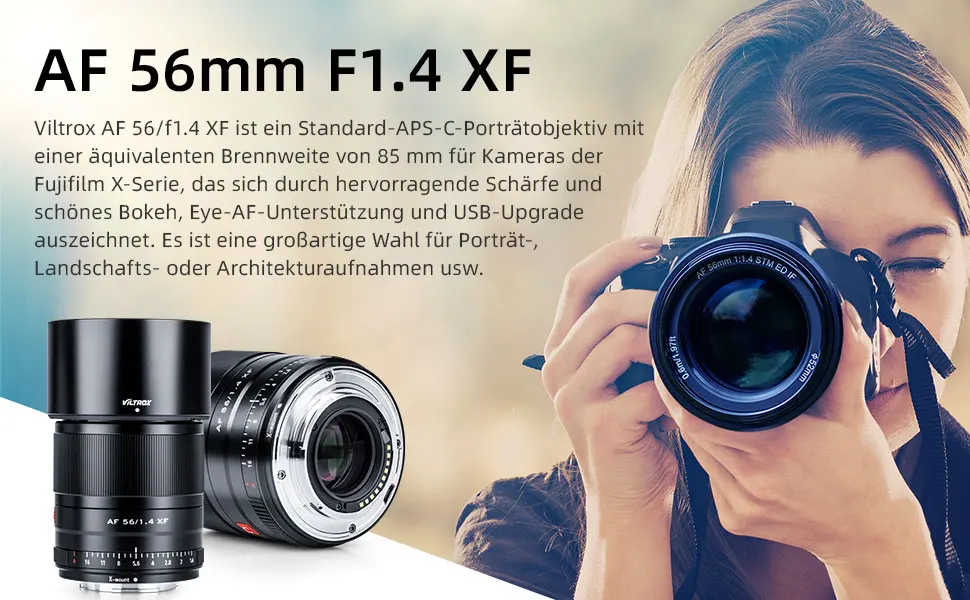 Объектив VILTROX AF 56 мм F1.4 XF Auto Focus prime-это объектив с большой диафрагмой, предназначенный для камеры Fuji X-mount.