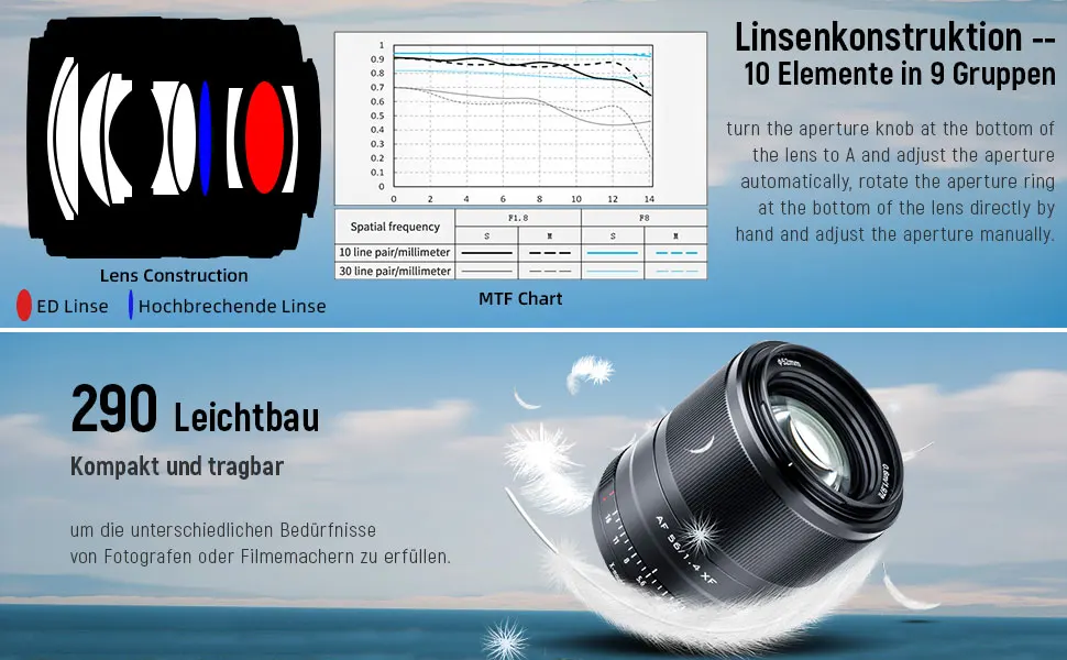 · Полная рама, фокусное расстояние 56 мм, Большая диафрагма F1.4.