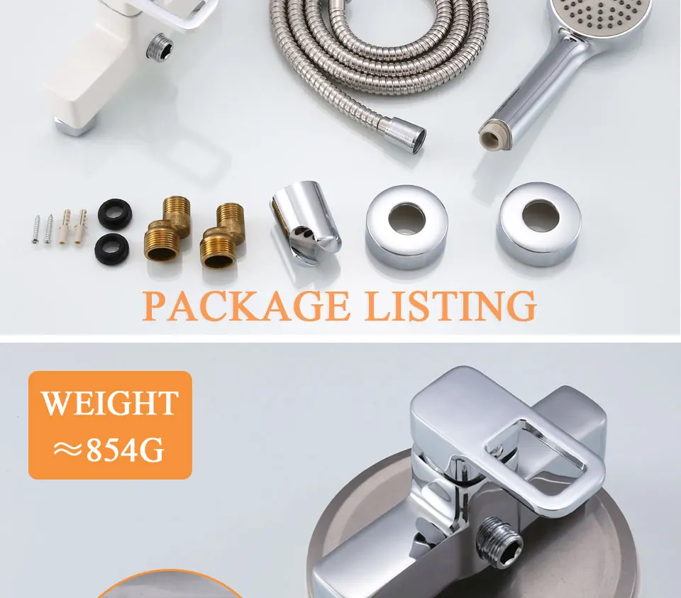 100% Новинка и высокое качество Тип: Набор смесителей для ванны Материал корпуса: цинковый сплав Цвет смесителя: хром/белый с серебристой ручкой Цвет ручного душа: серебристый Стиль: классический Горячая и холодная вода: Да Посылка 1 смеситель, 1 ручной душ, 1 шланг и другие установочные фитинги (как показано на изображении)