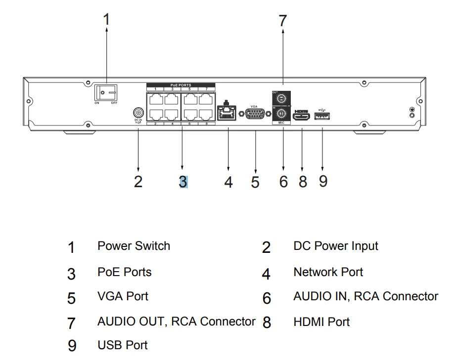 1 RJ-45 порт (10/100/1000 Мбит/с), 8 RJ-45 портов с питанием от PoE (10/100 Мбит/с)