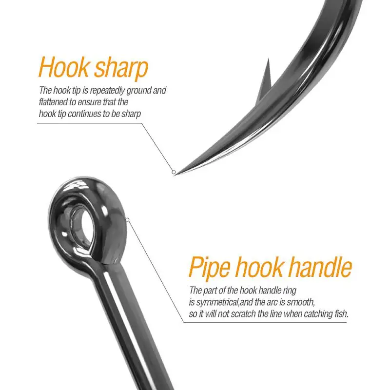 2. Часть ручного кольца крюка симметрична, дуга гладкая, поэтому она не поцарапает леску при ловле рыбы.