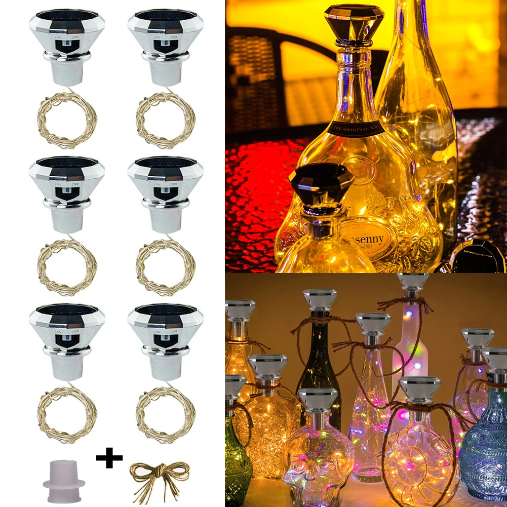 6/8/10 шт. Солнечный винные бутылки, 2 м 20 светодиодов на солнечных батареях светящиеся гирлянды на открытом воздухе водонепроницаемый Солнечный Алмазный пробковые огни для свадьбы праздничное сад патио на открытом воздухе Декор Светильник