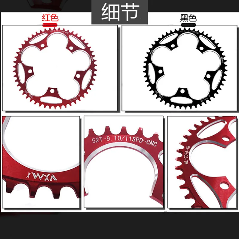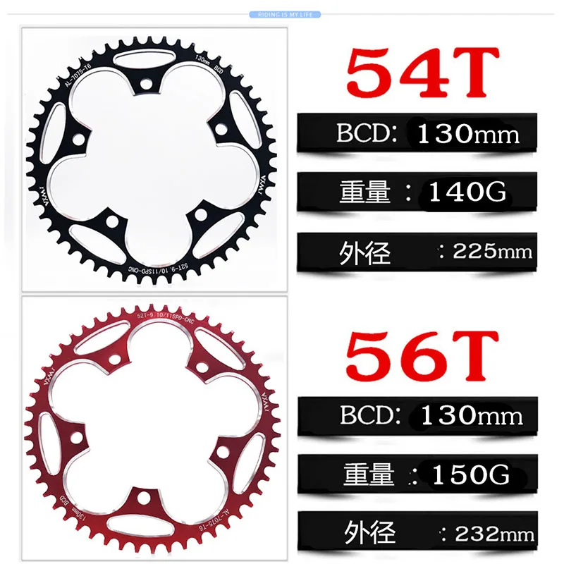 Спецификация продукта Зубцы: 50T / 52T / 54T / 56T / 58T (опционально) 130BCD: пожалуйста, тщательно Определите параметры кривошипа BCD перед покупкой. Цвет: черный/красный Размер: лазерная гравировка Диаметр 50T Вес: 115 г диаметр: 210 мм 52T Вес: 130 г диаметр: 218 мм 54T Вес: 140 г диаметр: 225 мм 56T Вес: 150 г диаметр: 232 мм 58T Вес: 170 г диаметр: 242 мм 60T Вес: 180 г диаметр: 257 мм