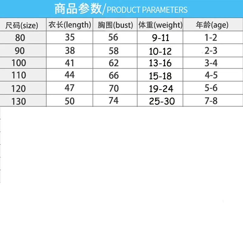 Пожалуйста, обратитесь к таблице размеров ниже, пожалуйста, выберите на один размер больше для ребенка с избыточным весом Единицы измерения: см
