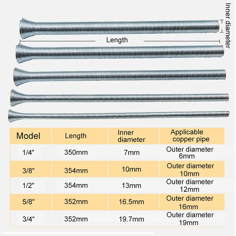 5 х пружинный трубогиб (5 размеров 1/4 '', 5/16'', 3/8 '', 1/2'' и 5/8 '')