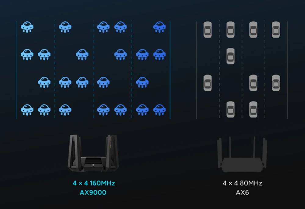 OFDMA повышает эффективность каждой передачи, а MU-MIMO увеличивает общую пропускную способность. Оба устройства объединены вместе, скорость быстрее, а задержка ниже, когда одновременно используются несколько устройств.