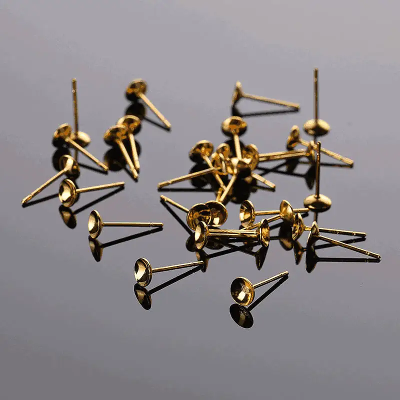 50 шт., импринты, толстые сережки с серебряным покрытием, шпильки для изготовления ювелирных изделий, пустые серьги, шпильки для ушей, Шариковые иглы, позолоченные