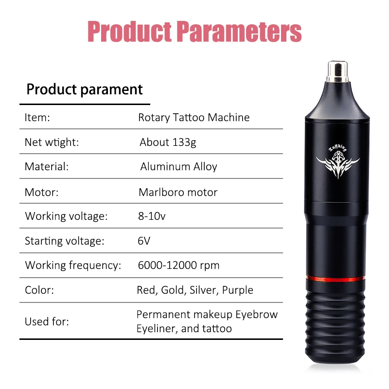 В соответствии с использованием напряжения, регулировки для контроля интенсивности и частоты, сектант, туман, цвет, тотем портрета, новые и старые традиции, европейские и американские стили могут контролировать небольшие травмы, быстрая окраска