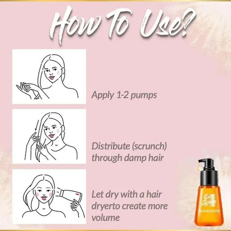 При сушке волос нанесите несколько капель на руки. От середины волос до кончика волос, он может быстро впитываться, эффективно выпрямляя волосы и делая их блестящими.