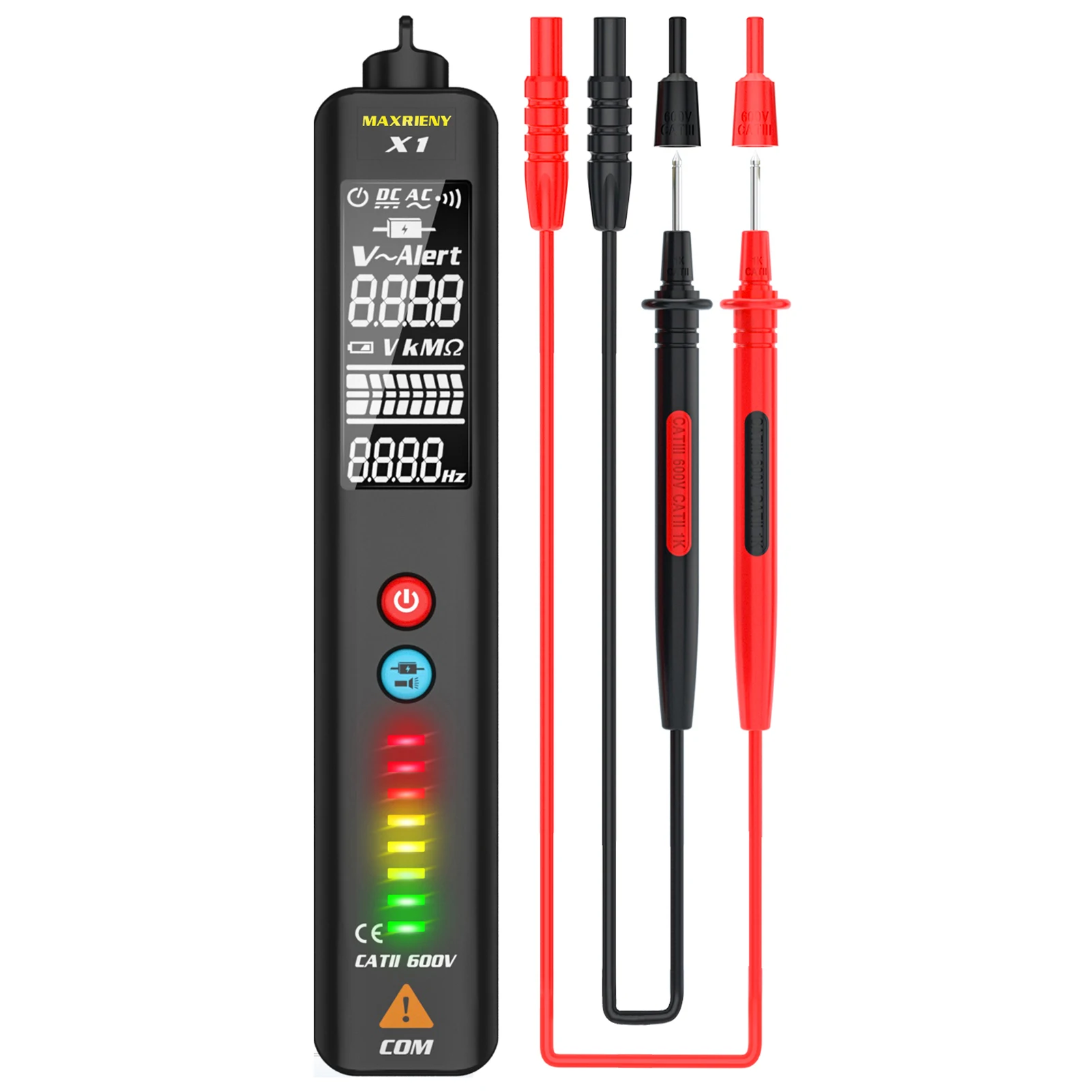 С ЖК-экраном и различными функциями, этот мультиметр полезен в вашей повседневной жизни и вашей работе. С 8 светодиодными индикаторами в 3 вида цветов, что позволяет вам легко оценить силу обнаруженного напряжения, включитесь и попробуйте, это не подведет вас.