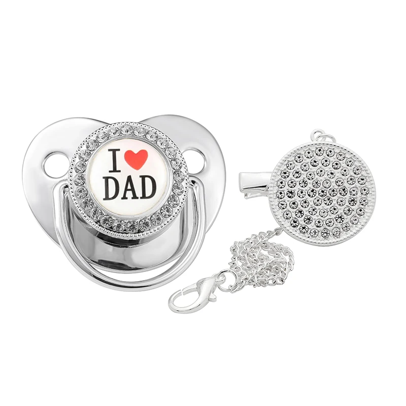 Новинка, серебряная детская соска, стразы, блестящая соска, клипсы, цепочка, соска для младенцев, Детская соска, пустышка «I Love Mum», Детские душевые подарки