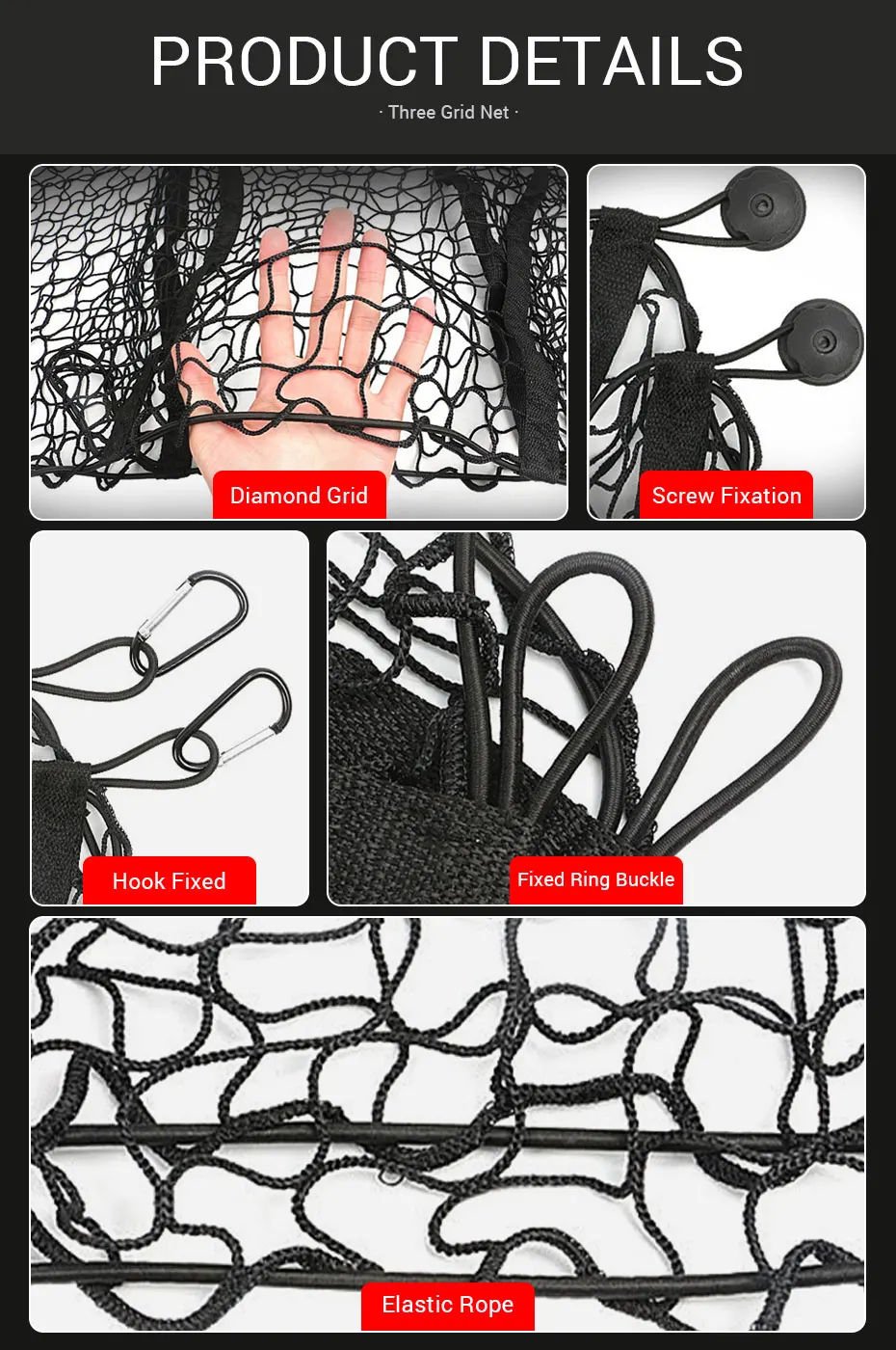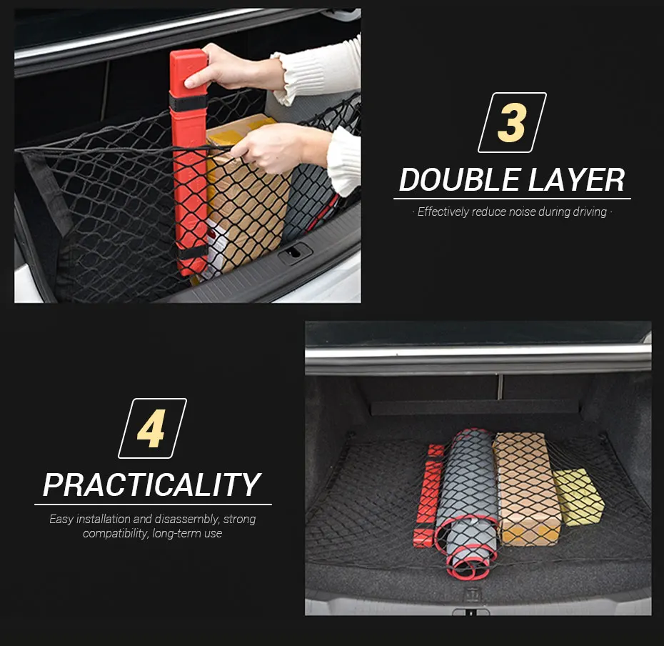 3. Применимо ко всем багажникам, независимо от того, какой вы багажник, вы можете установить, средняя сетка изготовлена из нейлонового материала, очень прочная, эта багажная сетка обладает эластичностью
