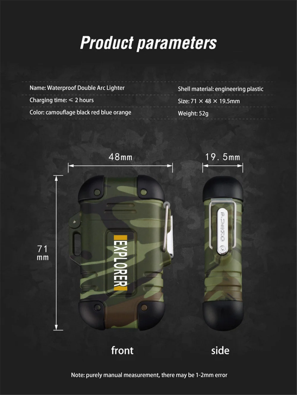 Уличная Водонепроницаемая Электронная зажигалка двойная дуга USB Сигарета воспламенитель портативный аксессуары для курения инструменты для кемпинга для исследователей