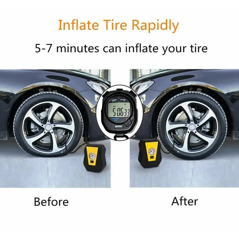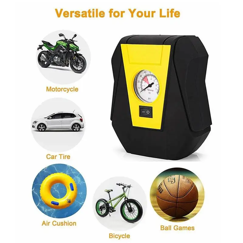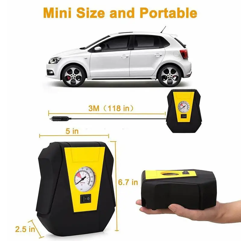 Это Надувное устройство для шин, автомобильный воздушный компрессор, Электрический насос, портативный Авто 12 В постоянного тока, 100 фунтов на кв. дюйм, может помочь вам в аварийной ситуации на дороге, обеспечивая быстрый и простой способ повторного надувания плоской шины. Его также можно использовать для надувания различных видов предметов, таких как велосипедные шины, надувные пляжные шары и т. д.