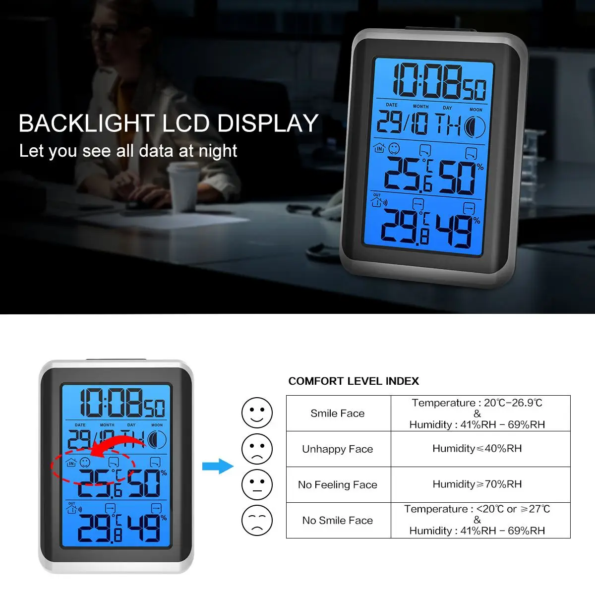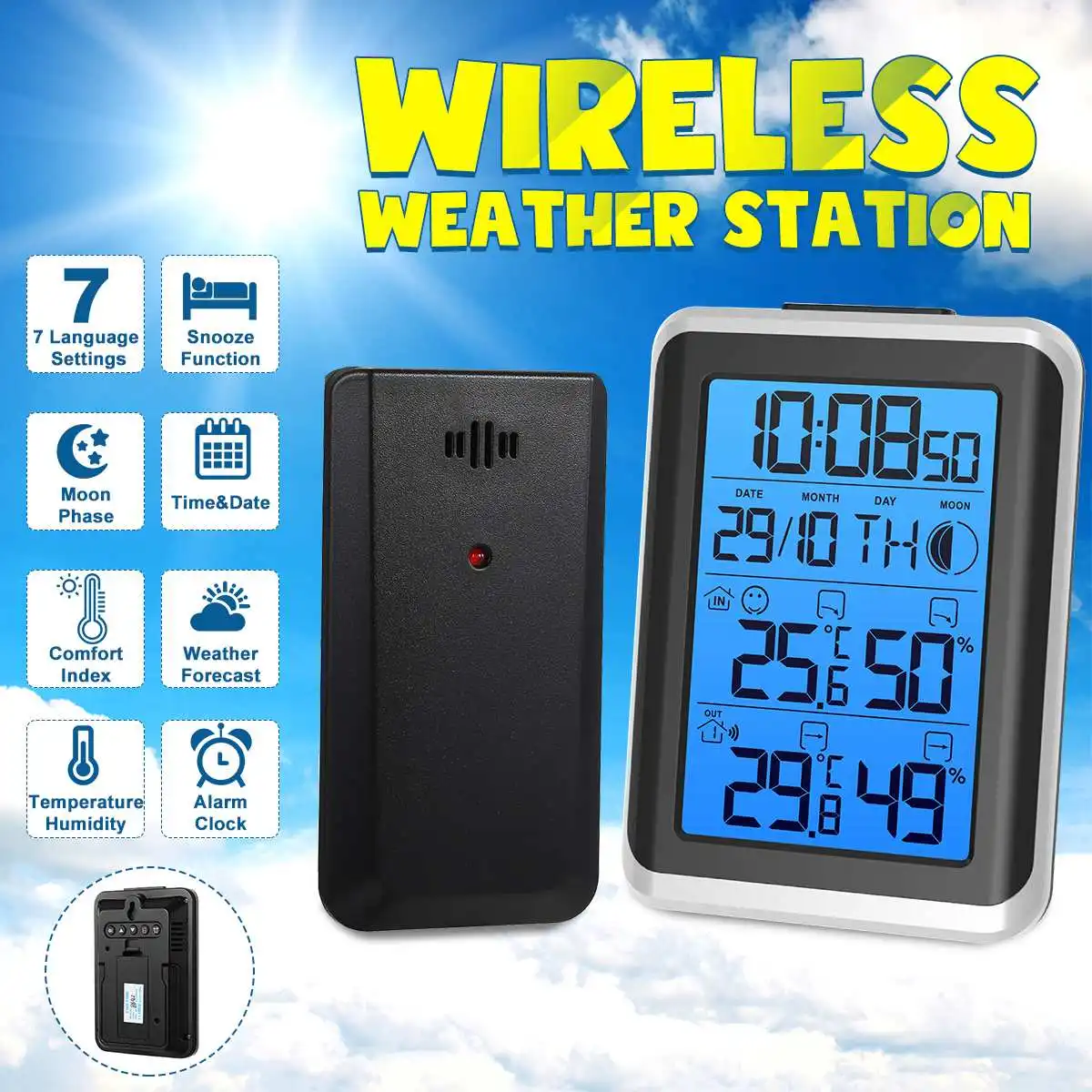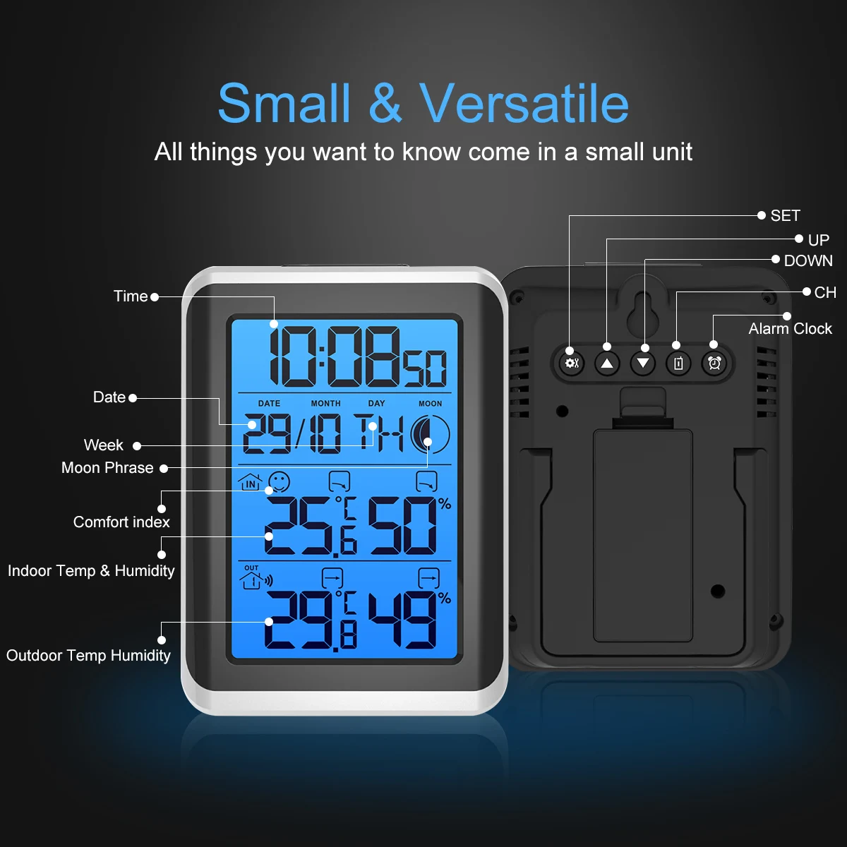 Часы-гигрометр с термометром и синей подсветкой Digoo DG-TH8461, 1 шт.