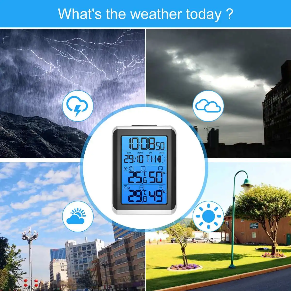 -Прогноз погоды: солнечная, частично облачная, облачная, дождливая