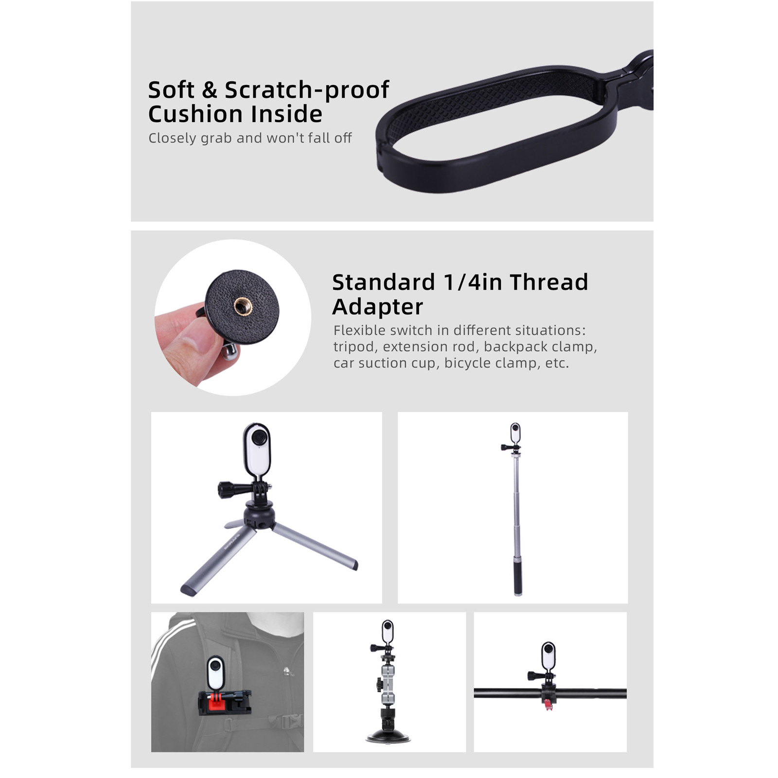 -Стандартная резьба 1/4, подходит для селфи-палки, штатива, зажима рюкзака, автомобиля