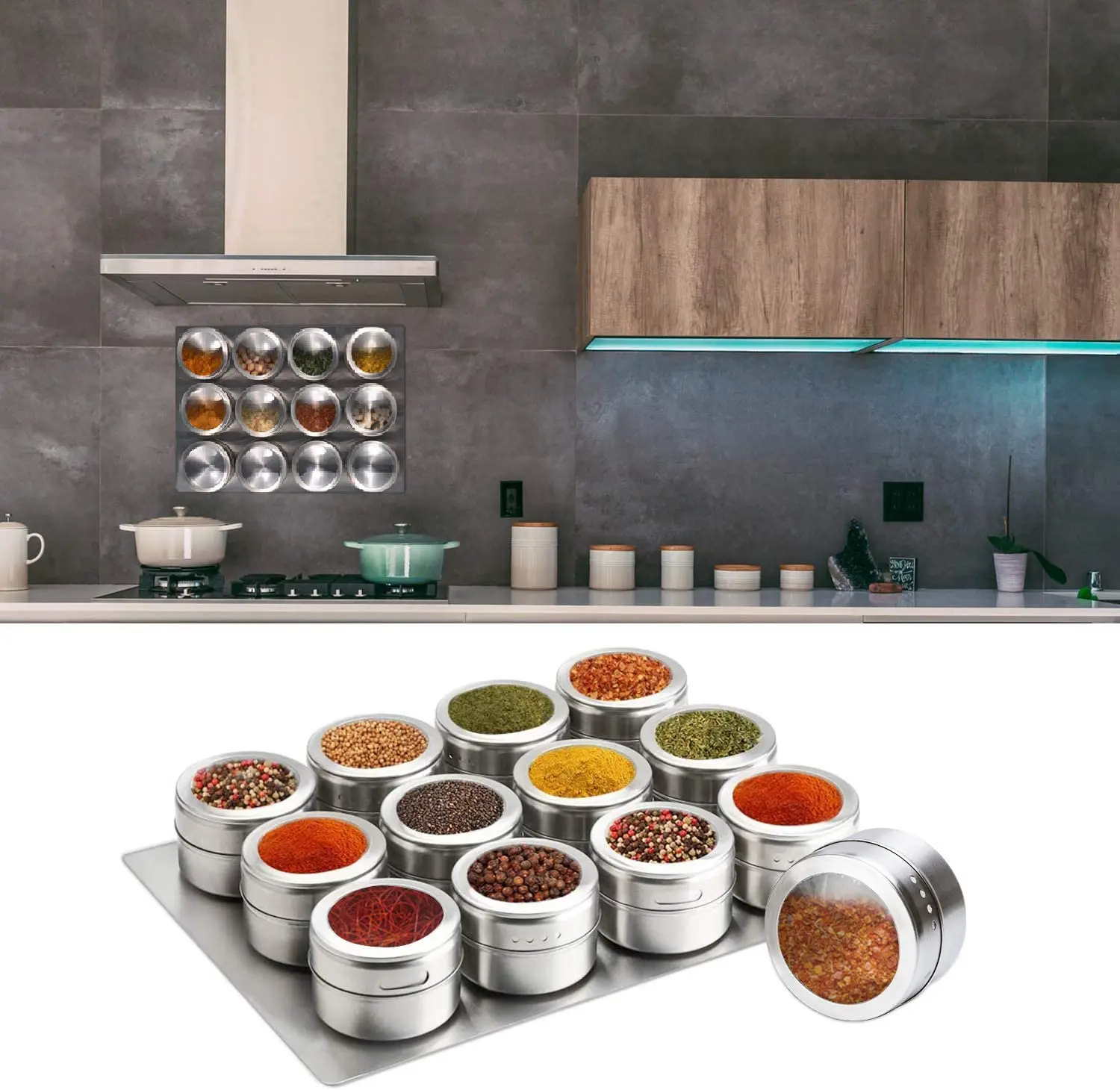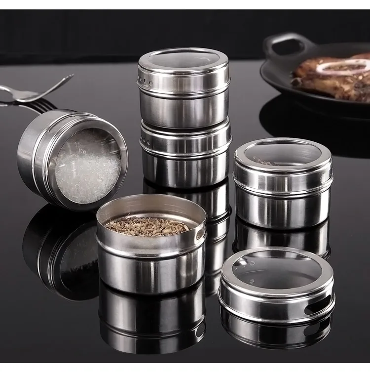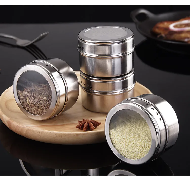 Набор банок для специй из нержавеющей стали с базой, магнитный бак для барбекю с приправой и наклейкой на этикетку, контейнеры для специй, кухонные инструменты