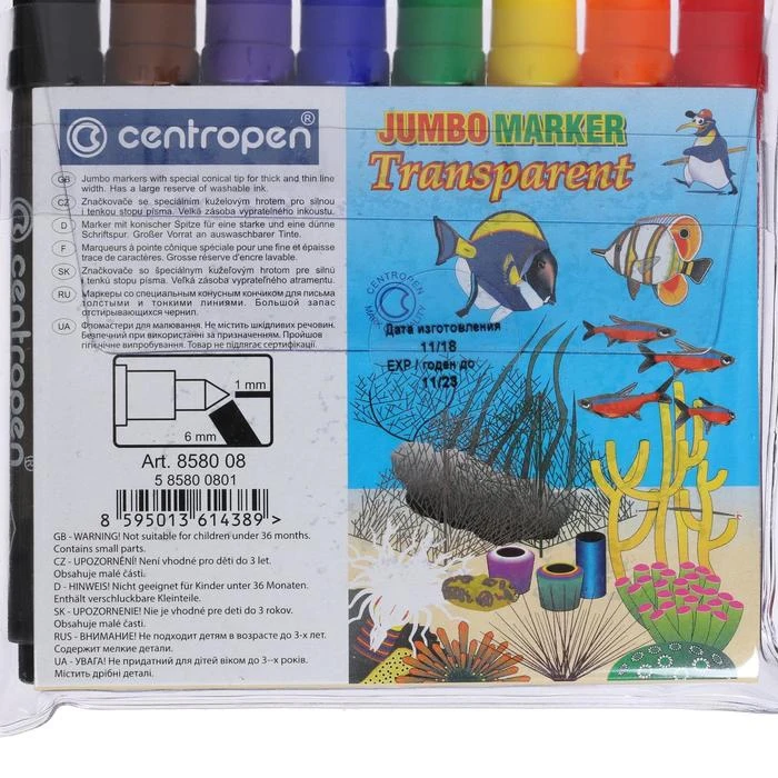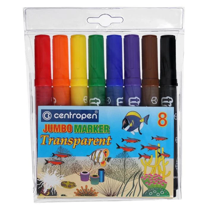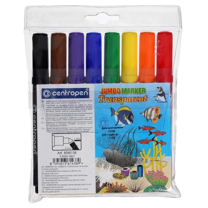 Фломастеры утолщенные 8 цветов Centropen Transparent 8580, линия 1-6 мм, длина письма 600 м