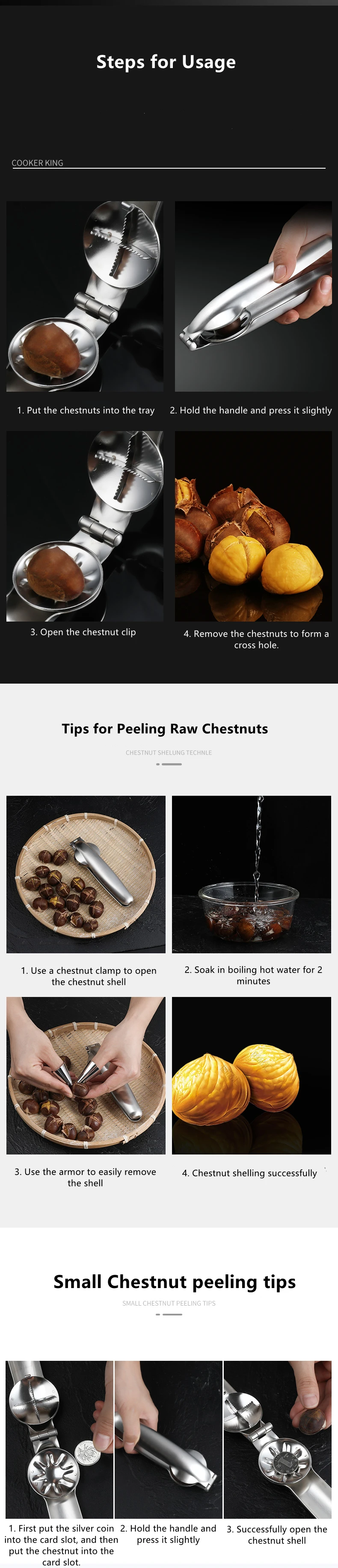 Быстро и легко открыть каштаны и орехи различных размеров.