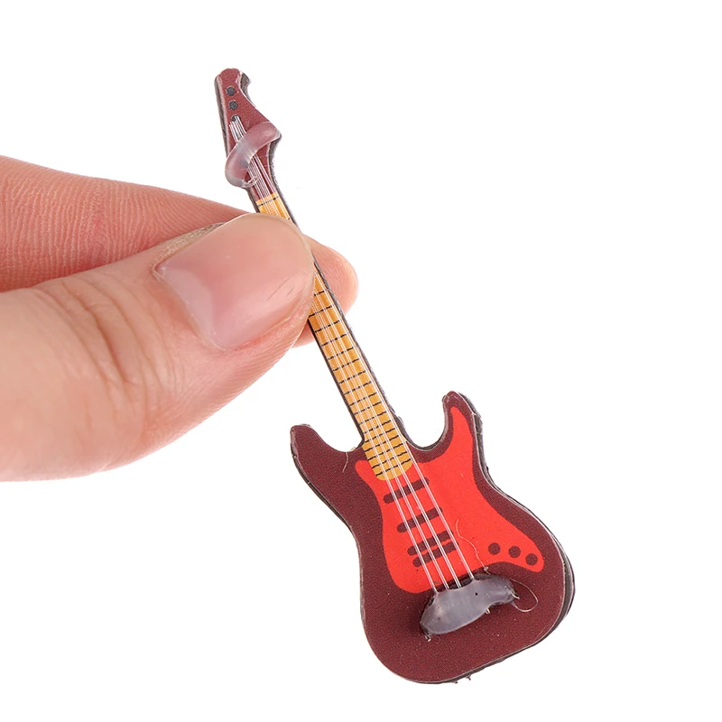 Ярко-красная роспись, эта электрогитара для кукольного домика очень тонкой работы
