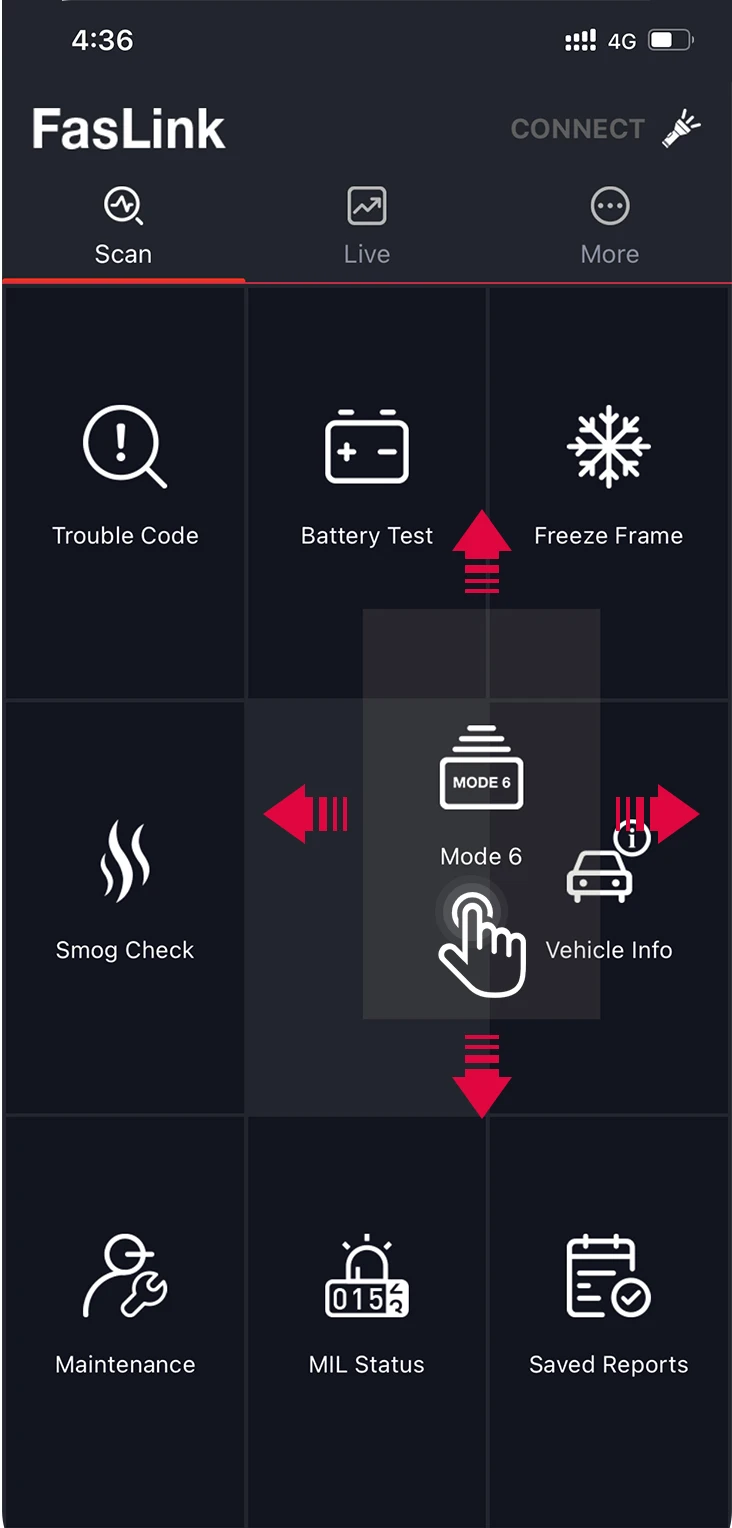 ● Бортовой тест монитора (режим 6): извлекает и отображает результаты испытаний компонентов и систем, связанных с выбросами.