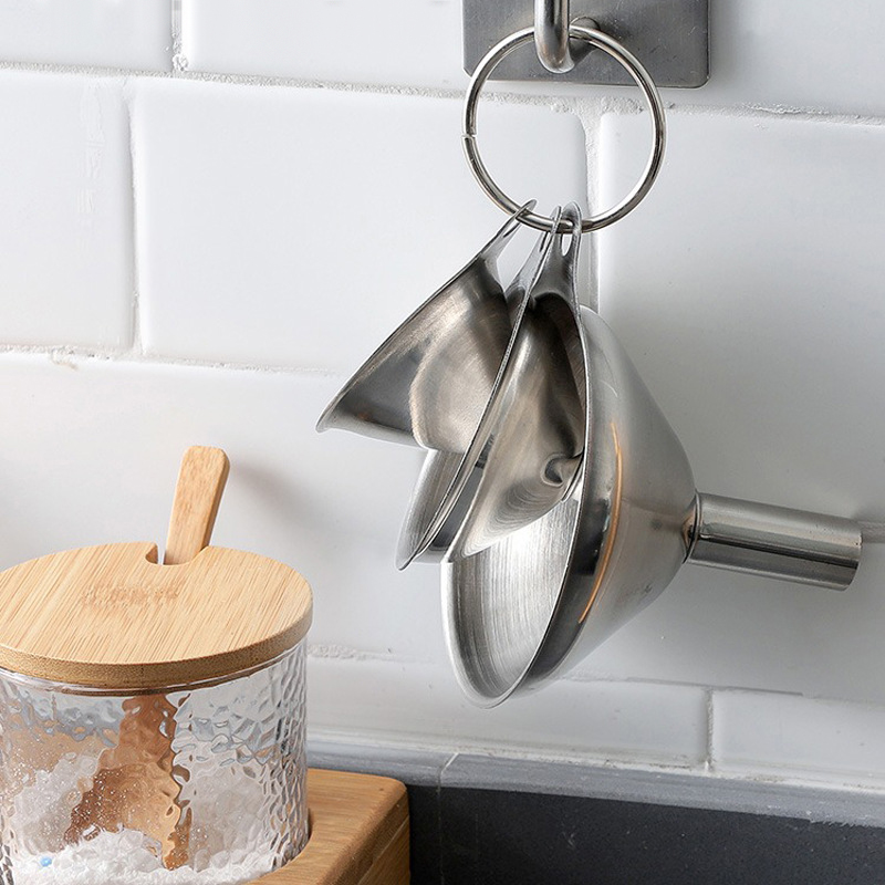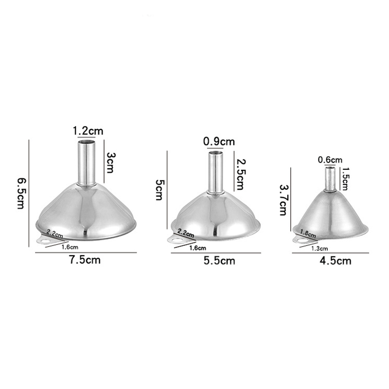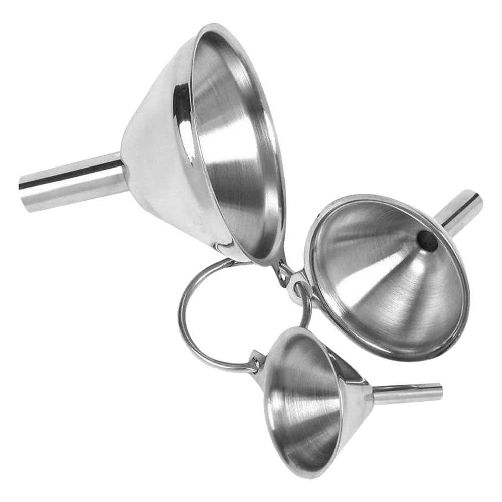 Легкое хранение: каждая Воронка имеет полностью узкий стержень, который не выльется при размещении в кухонном шкафу. Это идеальная бутылка или контейнер. Прочная Воронка Из Нержавеющей Стали, легко моется, 3 размера, с зажимным кольцом, может хранить их вместе. Сейф для посудомоечной машины.
