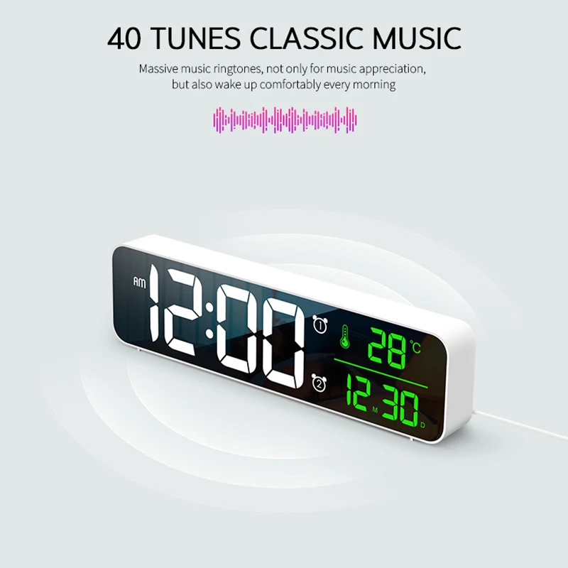 Электронный цифровой музыкальный будильник с отображением температуры и даты, часы-будильник, настольное украшение, зеркальные часы