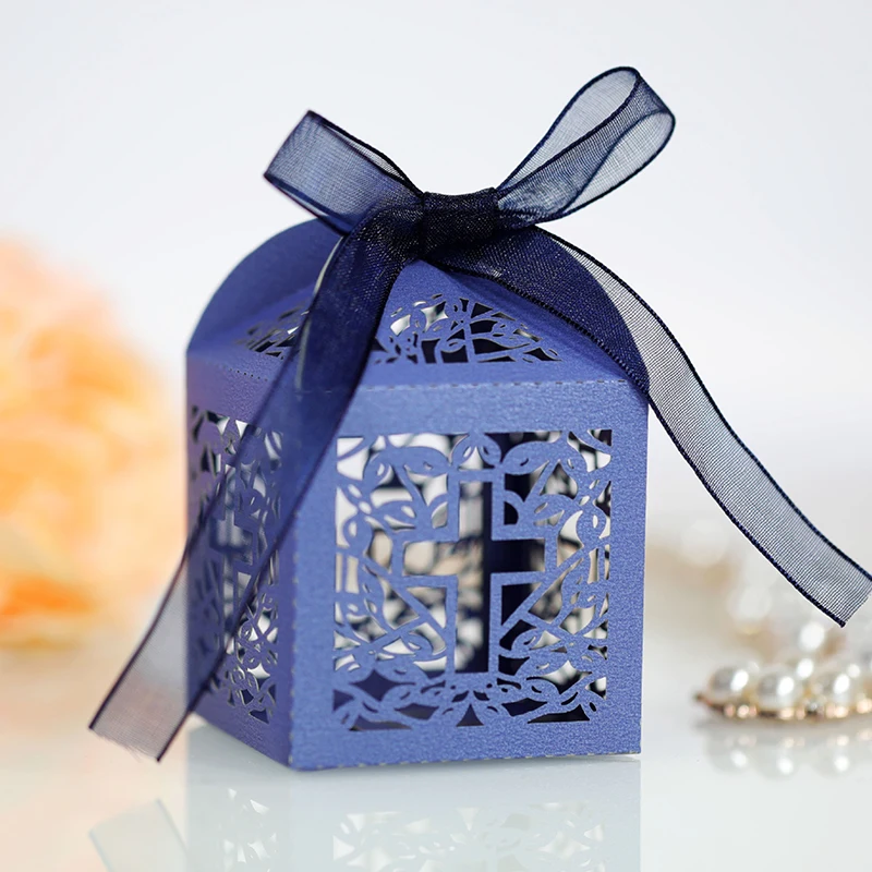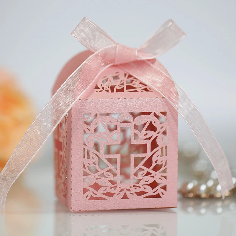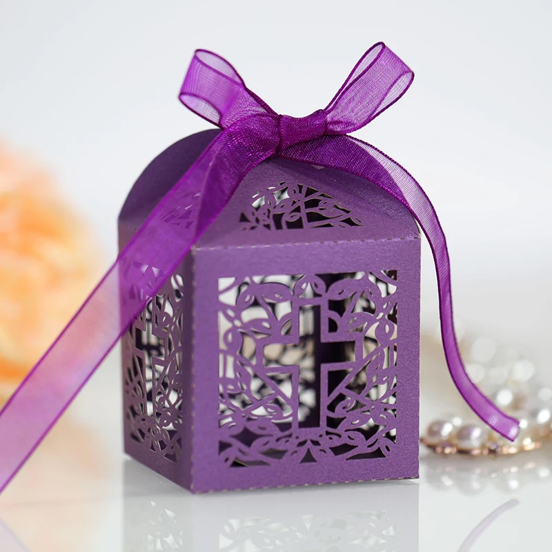 10 шт., крестовая лазерная резка, Свадебная подарочная коробка, пустая религиозная коробка для конфет с лентой, Крещение, детский душ, Свадебная вечеринка, Декор