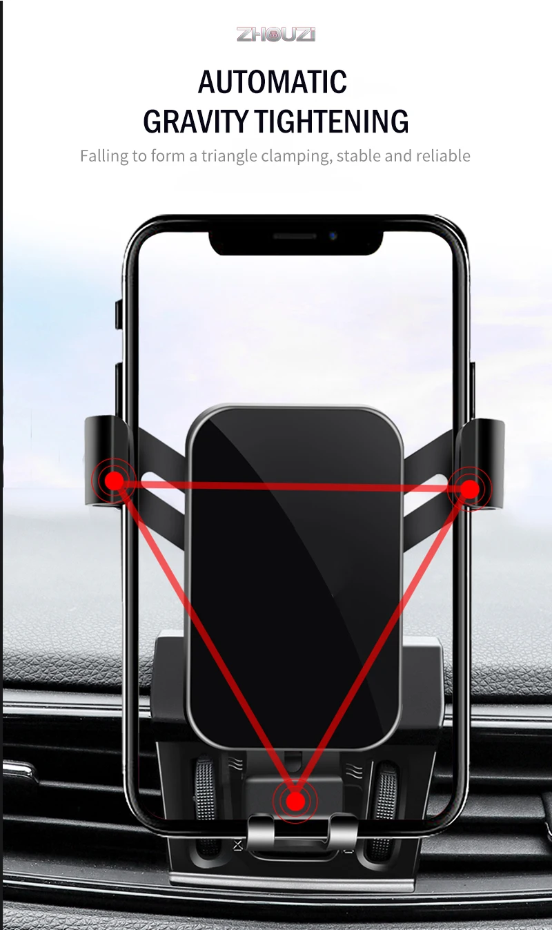 Design: Innovative design, gravity linkage and triangular support, clamp automatically when the phone is put on the holder, steady and stable, release automatically when take the phone down from the holder, easy and convenient.Sturdy and Well Protective: High quality aluminum alloy cutting, surface oxidation, Car Mount use Elastic & Slip-proof Clip hold the Air Vent firmly, soft rubbers on vent to avoid scratching your devices.