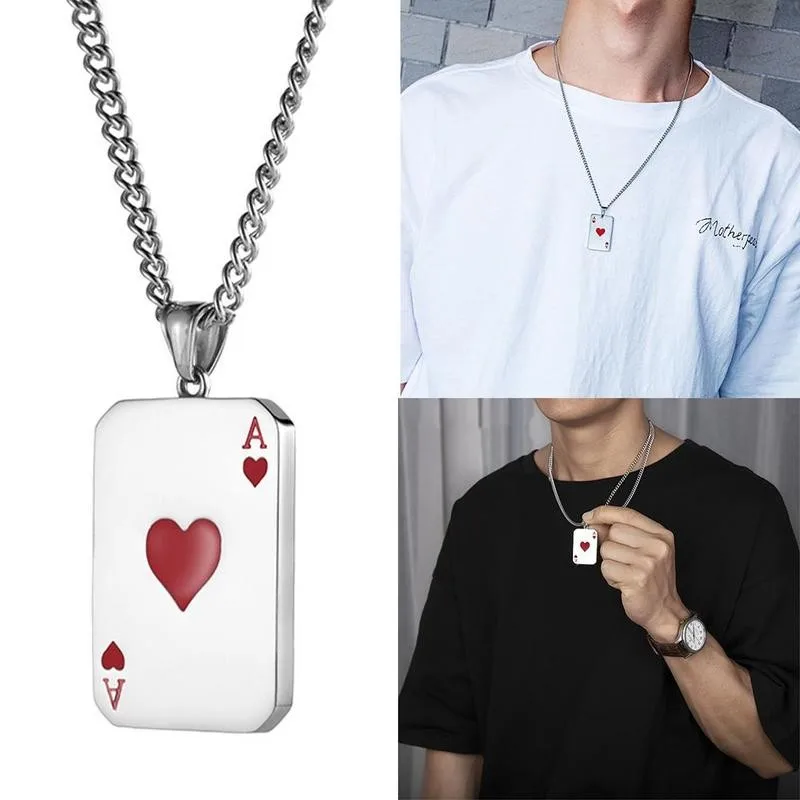 Мужская мода ожерелье игральные карты красные сердца Лопаты Ожерелье ключицы ожерелье покер цепочка с подвеской Панк ювелирные изделия