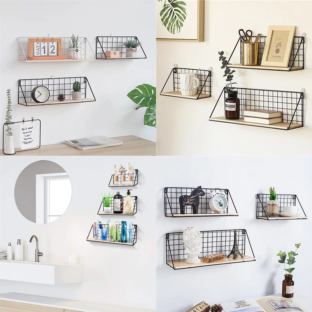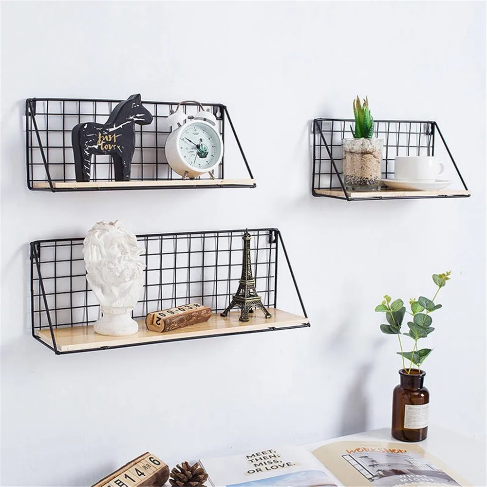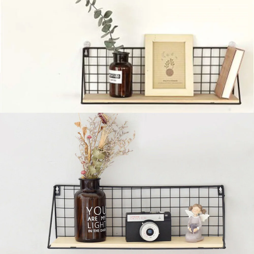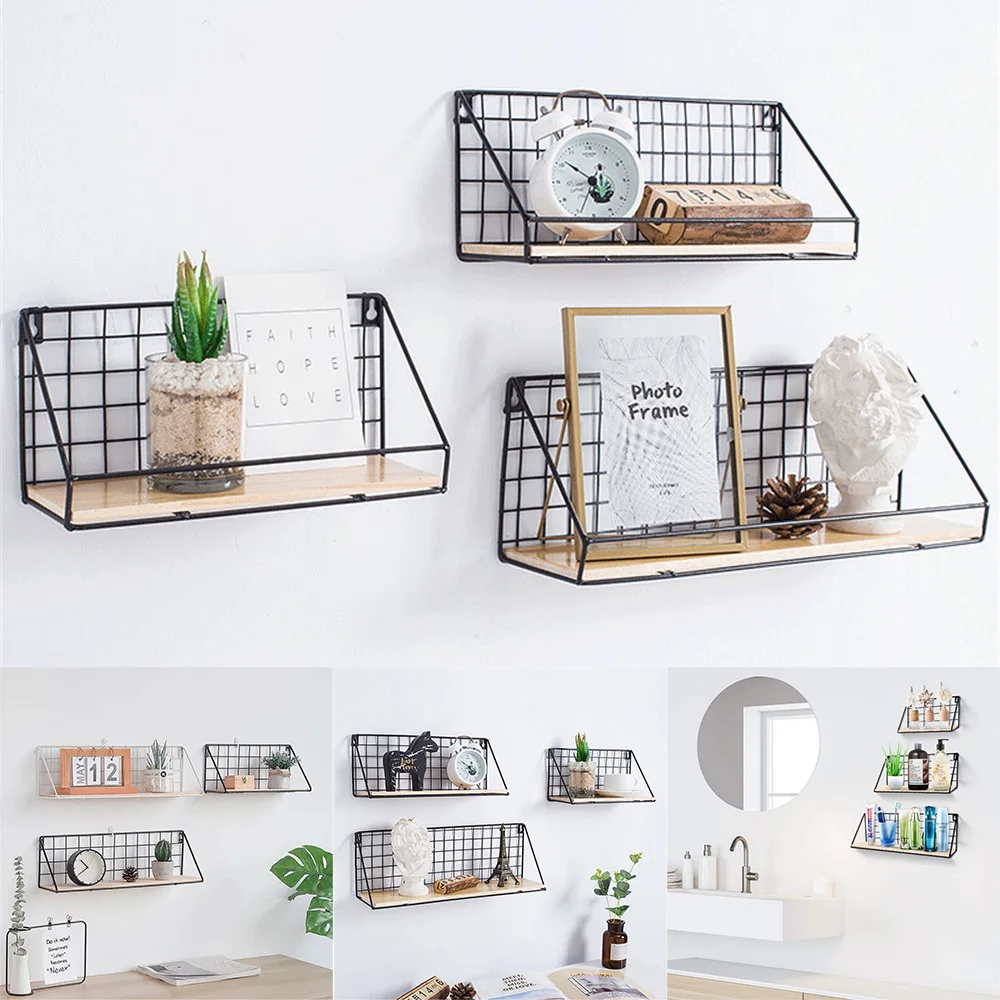 100% Высокое качество и новый бренд. Отдельно стоящий дисплей обеспечивает превосходный роскошный вид для области. Хорошая проводка и гладкая, легко собирается. Изготовлен из металла, обеспечивает прочную и стабильную поверхность. Также отлично подходит для хранения специй и банок на кухне. Продукт: полка для хранения Материал: железо, дерево Цвет: черный Размер: S, M, L Маленький: 25*11*12 см/9,8*4,3*4,7 дюймов Средний: 35*12*12,5 см/13,8*4,7*4,9 дюймов Большой: 45*12,5*14 см/17,7*4,9*5,5 дюймов Посылка включает в себя: 1 x полка для хранения 2 x бесшовные ногти 2 липких крючка