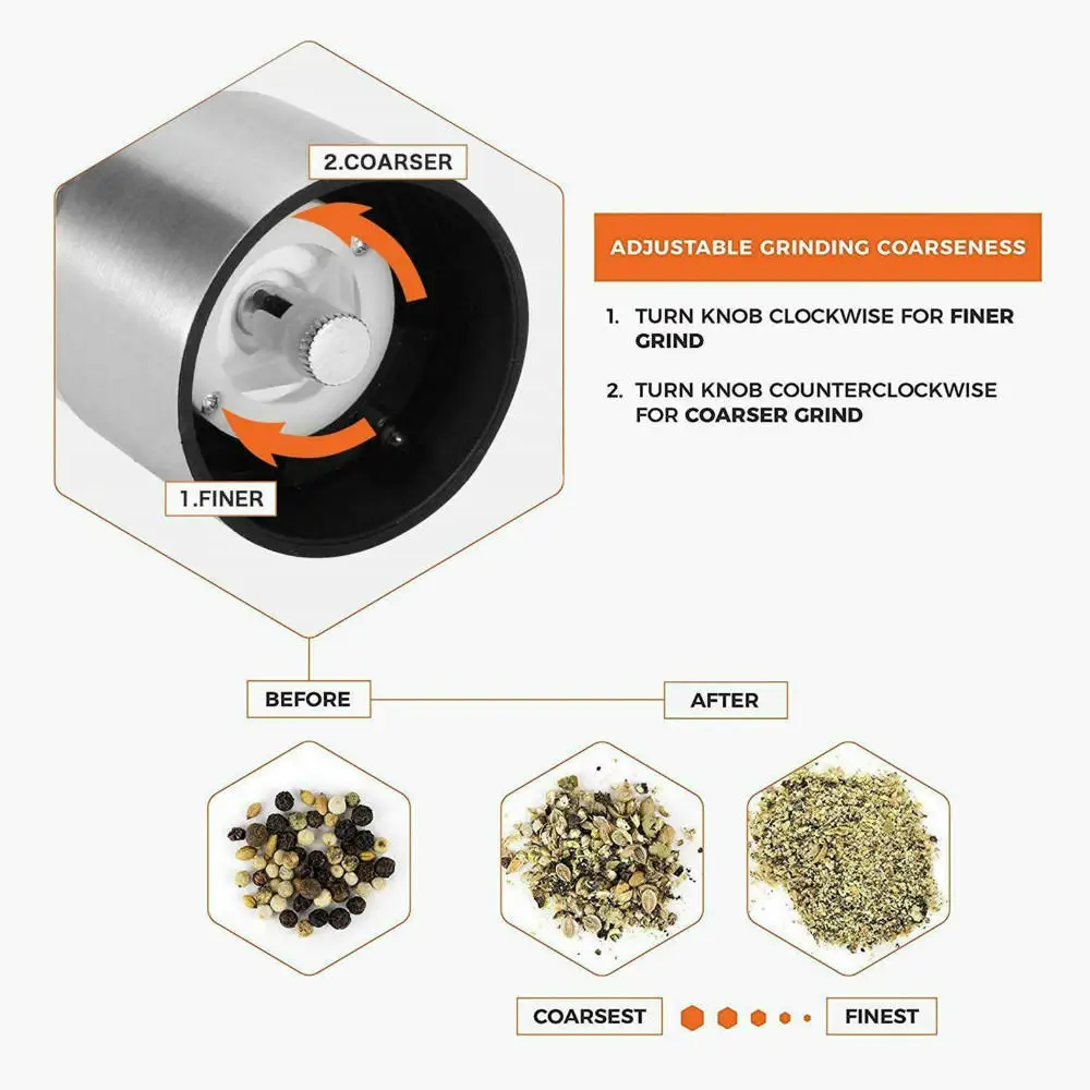 Описание: 100% новый и высококачественный. Цвет: как на картинке Размеры измеряются вручную. Возможны отклонения на 1-2 см. Несравненное удобство: Добавление свежих и вкусных специй в продукты еще никогда не было так просто. Эта удивительная электрическая мельница для перца позволит вам добавить соль или перец в продукты, просто нажав кнопку! Дизайн освещения: вы когда-нибудь использовали обычную мельницу для соли и перца? Вот что, вероятно, произошло: Вы добавили столько соли или перца, что не могли съесть еду. С этой удивительной электрической мельницей этого никогда не произойдет. Его Светильник позволяет точно знать, сколько специй вы использовали Супер вкусные продукты: с этим вы можете наконец получить идеально приправленные продукты, которые будут удовлетворять ваши вкусовые рецепторы каждый раз, когда вы готовите! Характеристики: Материал: нержавеющая сталь Цвет: серебристый Питание: 4 батарейки AAAA (не входят в комплект) Размер: (приблизительно) 5,2*22,5 см Посылка Мельница для перца, 1 шт.