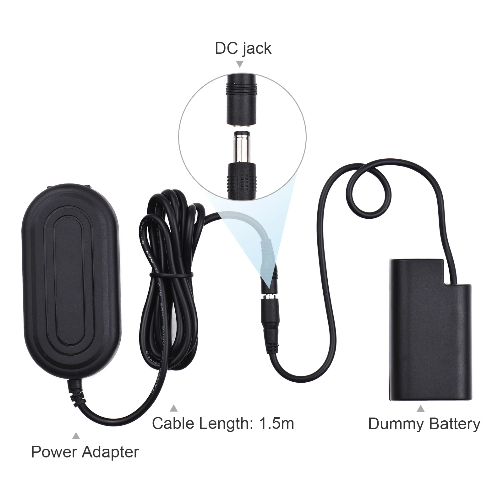 Dummy battery and power adapter kit, can largely prolong the camera shooting time, perfect for lengthy studio photography.