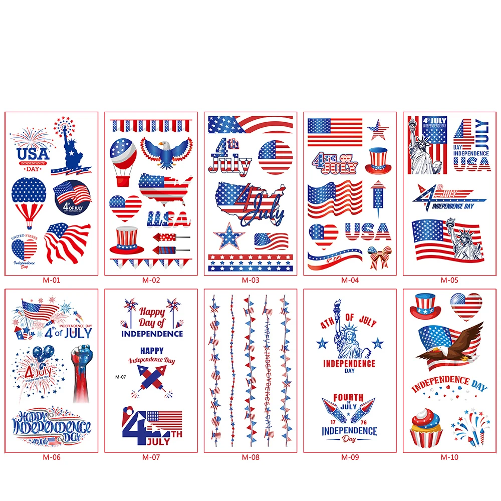 10 листов День Независимости тату наклейки американский флаг наклейки День Независимости временные татуировки