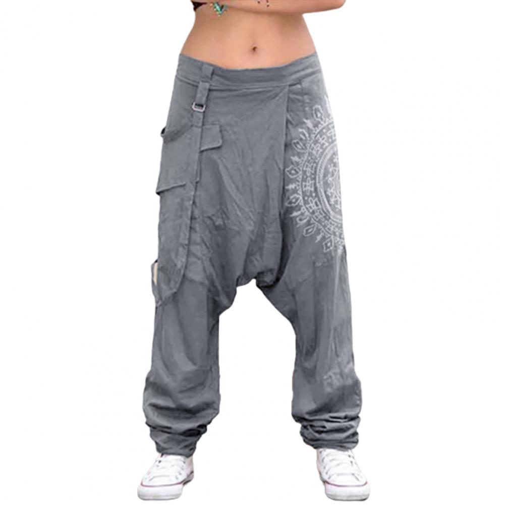 Женские шаровары, boho, клетчатые брюки с высокой талией, широкие повседневные Капри, брюки с низкой посадкой, с заниженным шаговым швом, РЕТРО ПРИНТ, мешковатые