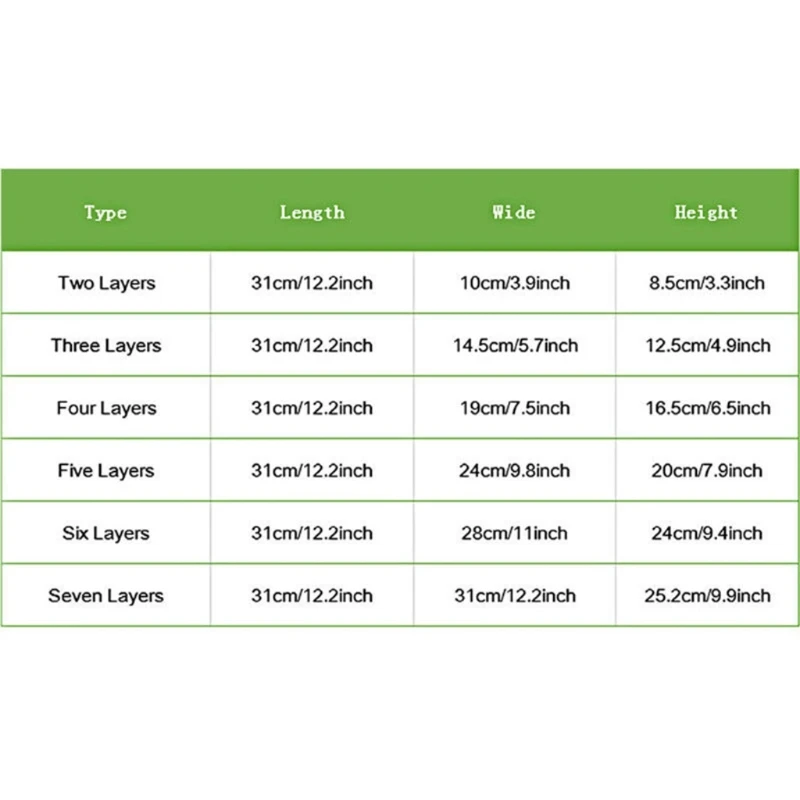 6 слоев: 31x28x2 4 см/12,2x11x9,4 ''; Можете разместить max 60 бутылок лак для ногтей