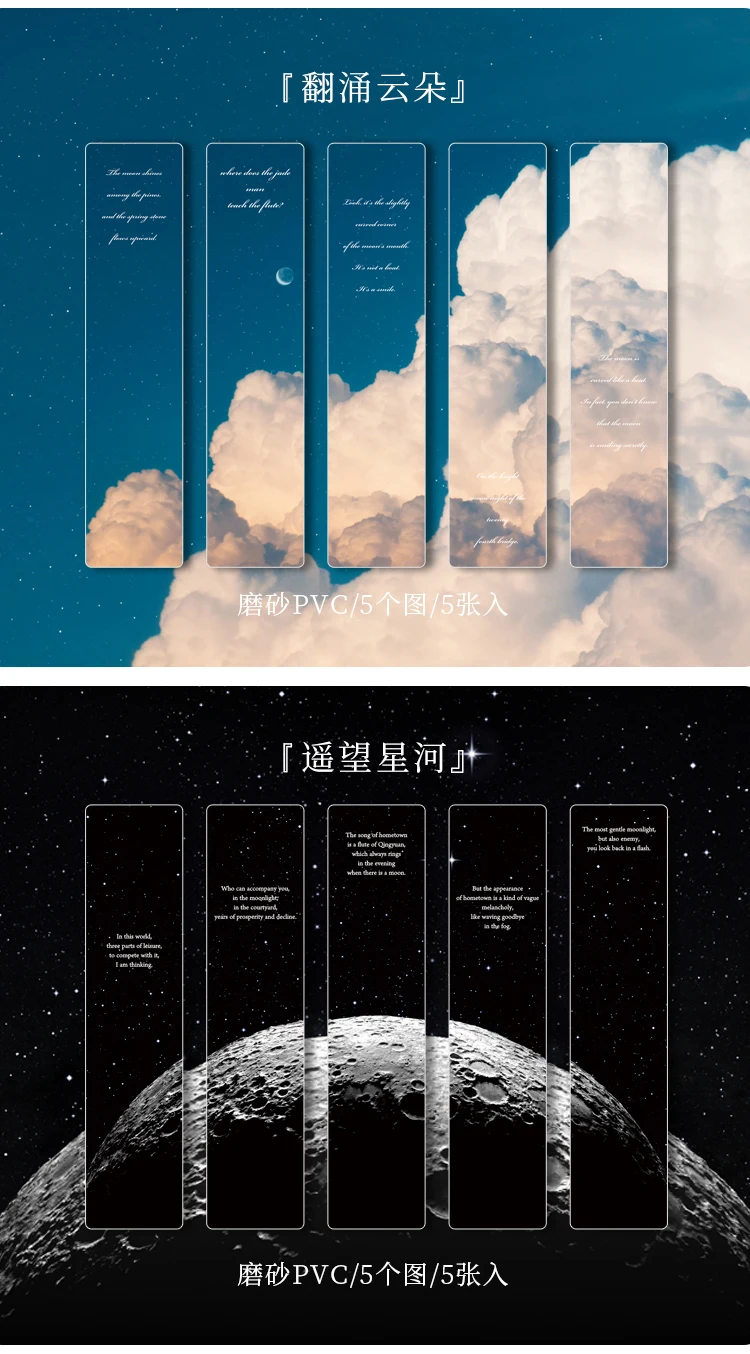 5 шт./компл. роуминг Вселенная Матовый ПВХ закладки карты луна звезды облака небо Ins стиль Книга Страница маркер подарки для друзей