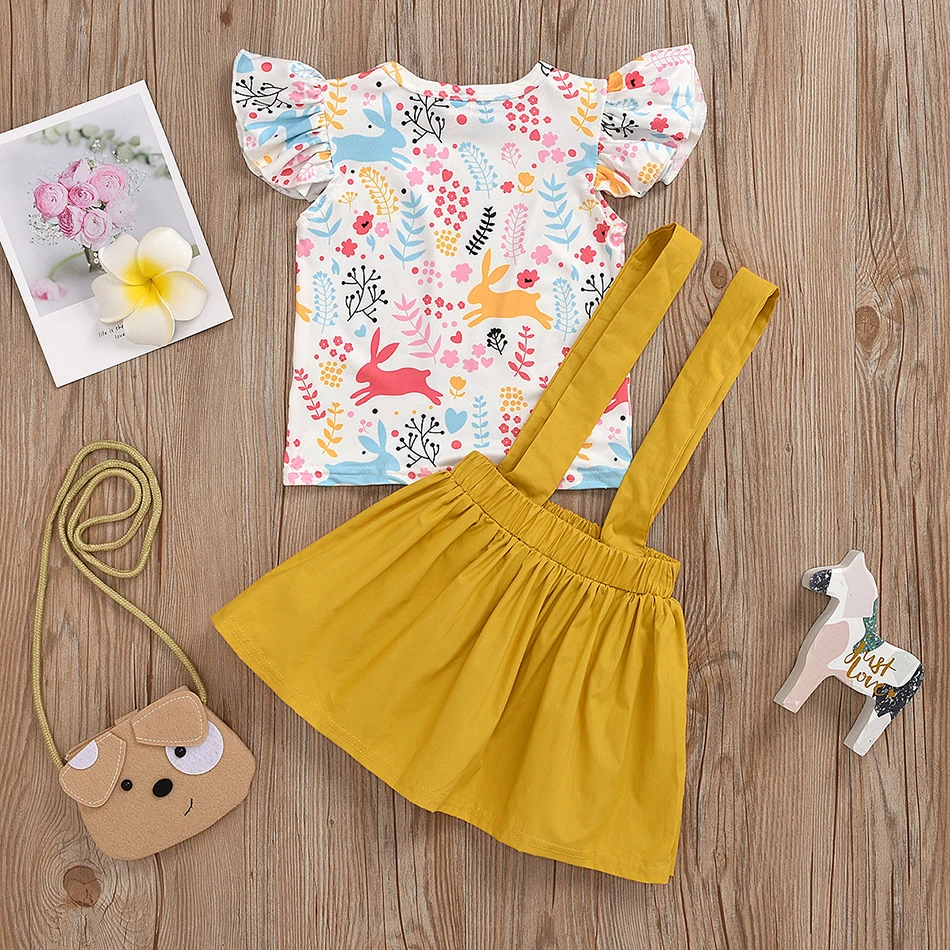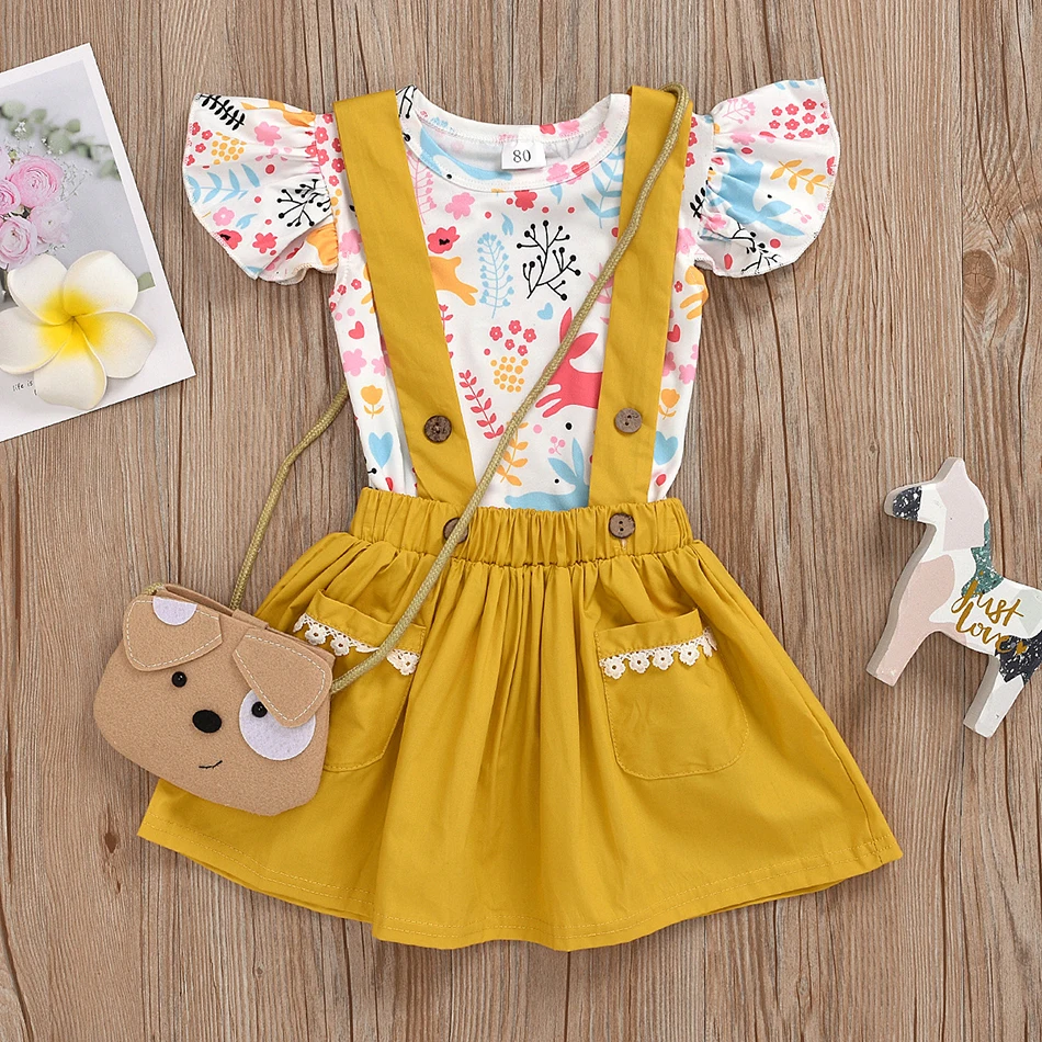 Летняя детская футболка для новорожденных девочек + юбка на подтяжках с пуговицами повязка на голову комплекты одежды из 2 предметов одежда для маленьких девочек